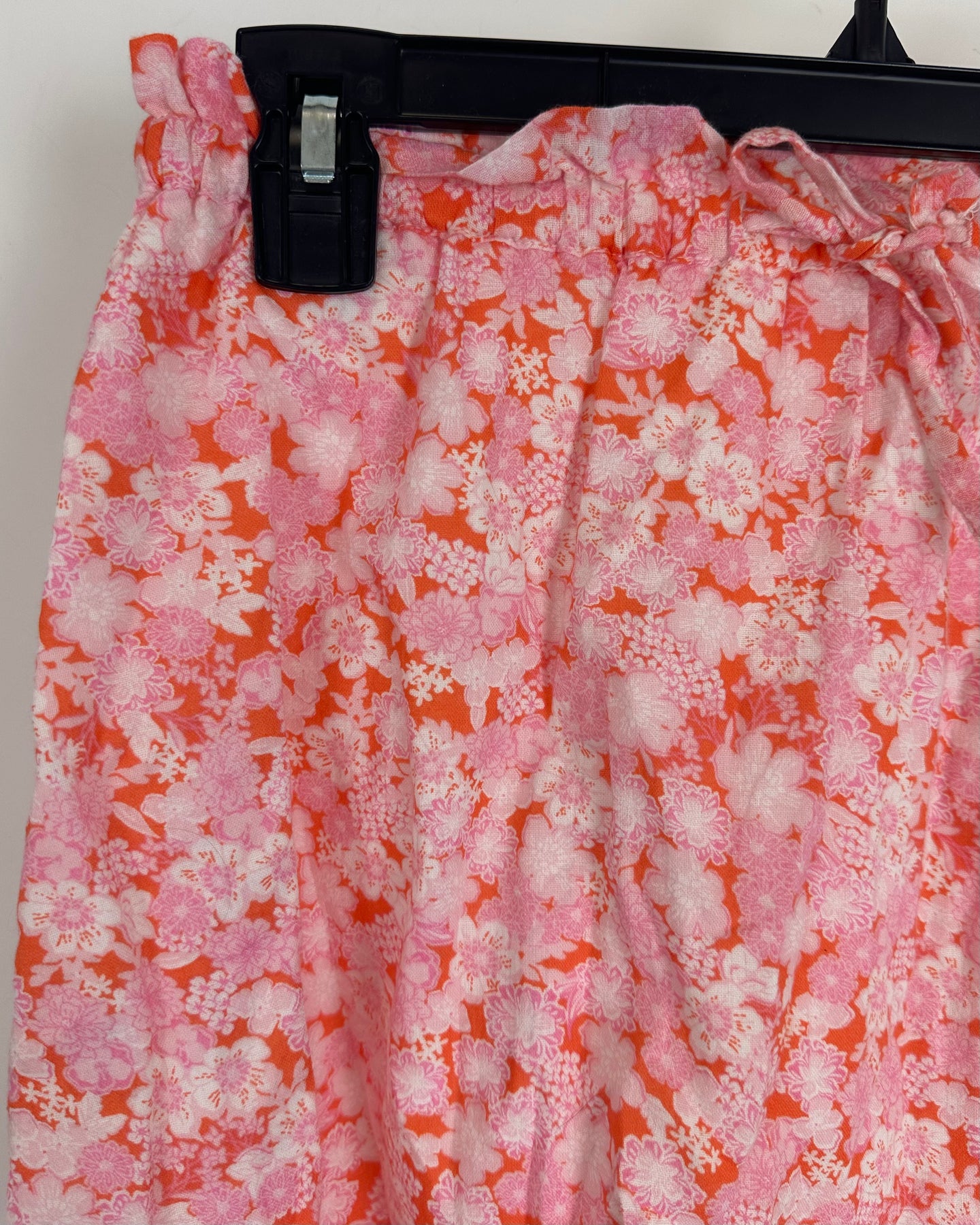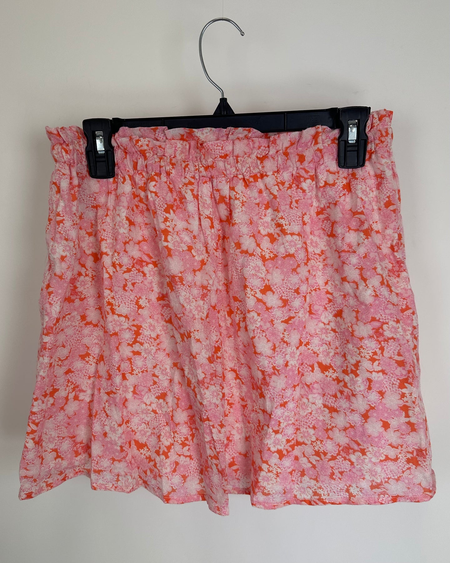 Abound pink and orange flowy skirt in a floral pattern with a elastic stretch waistband and drawstring