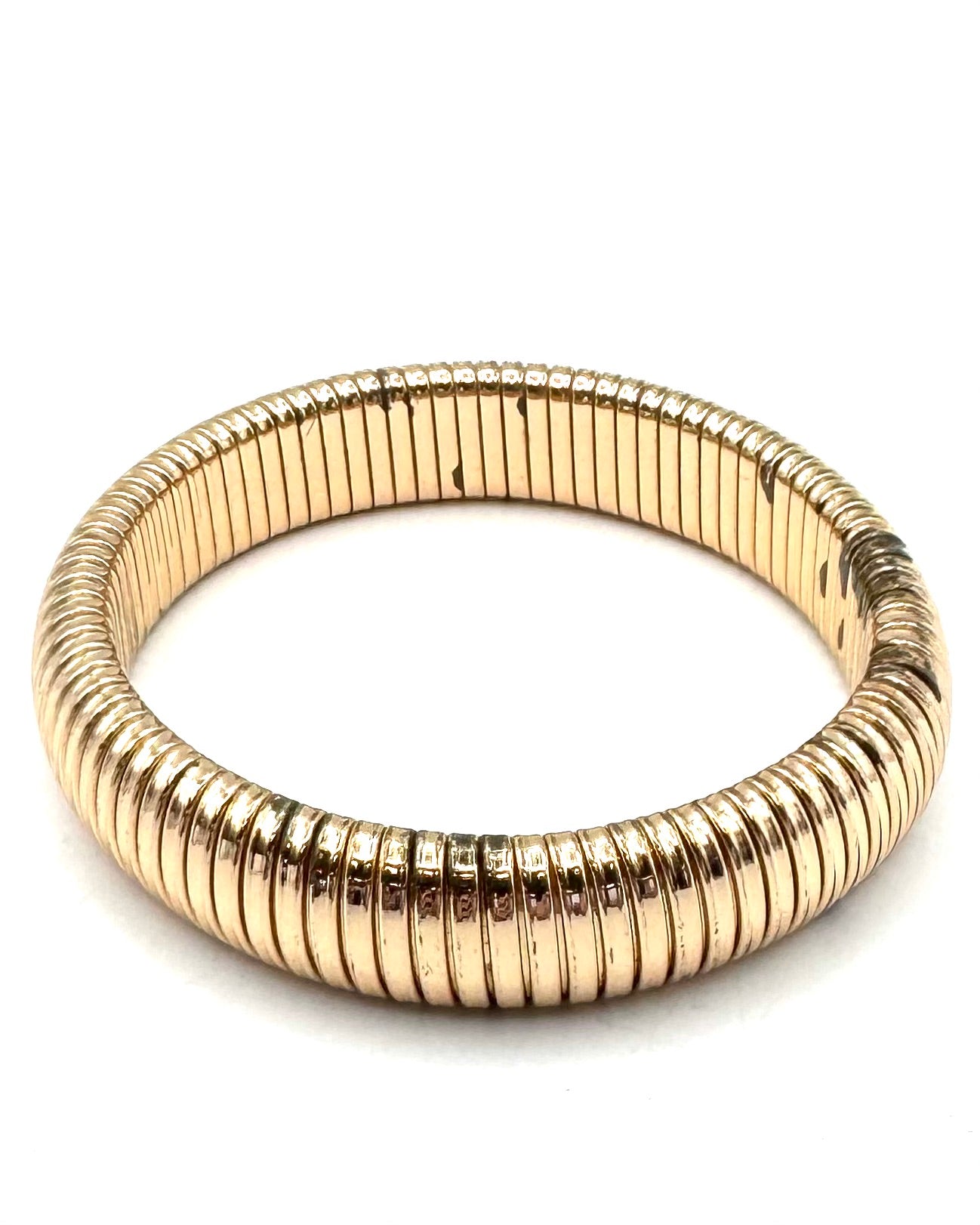 Ettika flexible and thick gold bangle bracelet. Please note there is slight discoloration on the bracelet