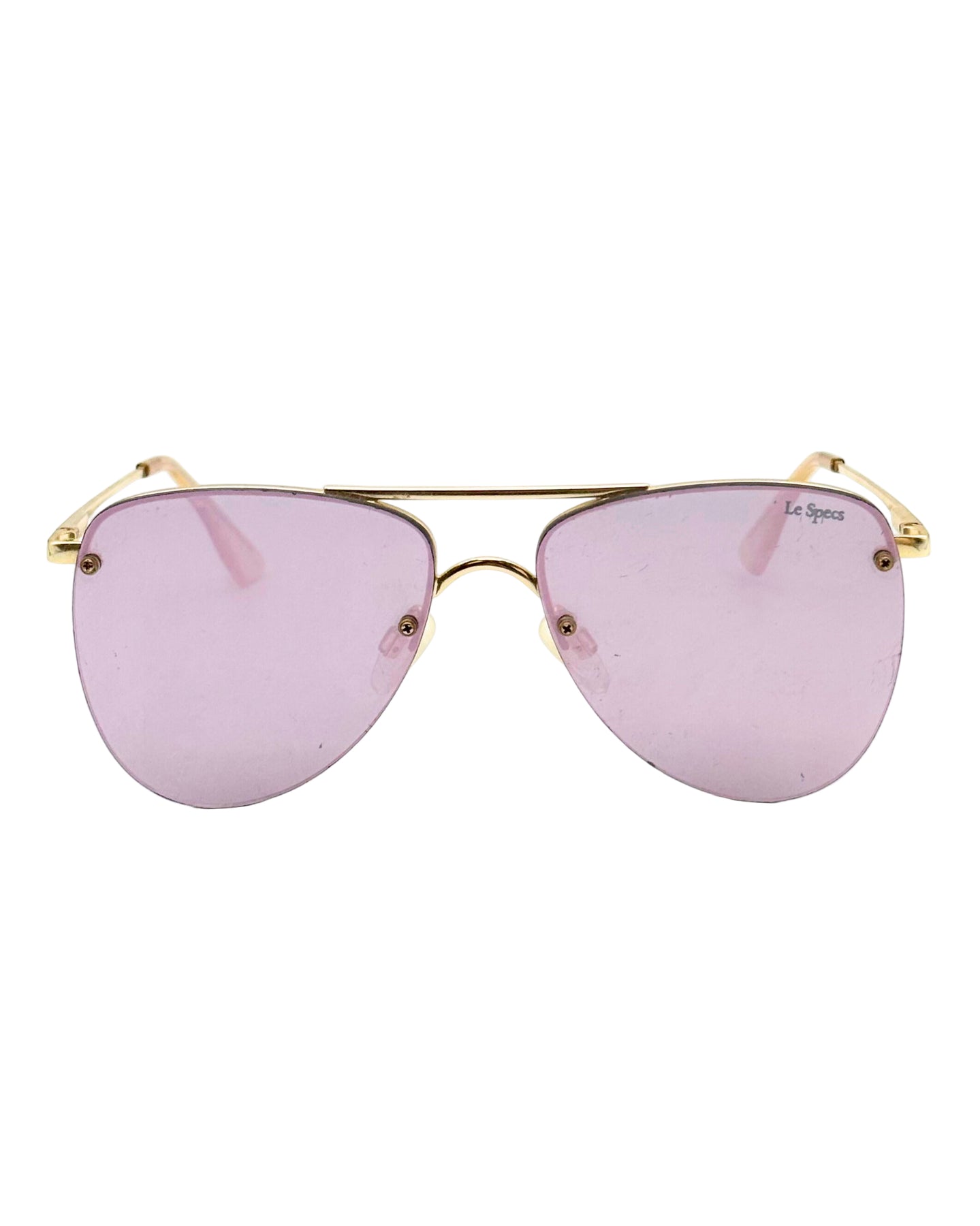 Le Specs aviator sunglasses with purple frame and gold sides. These are gently used with slight markings