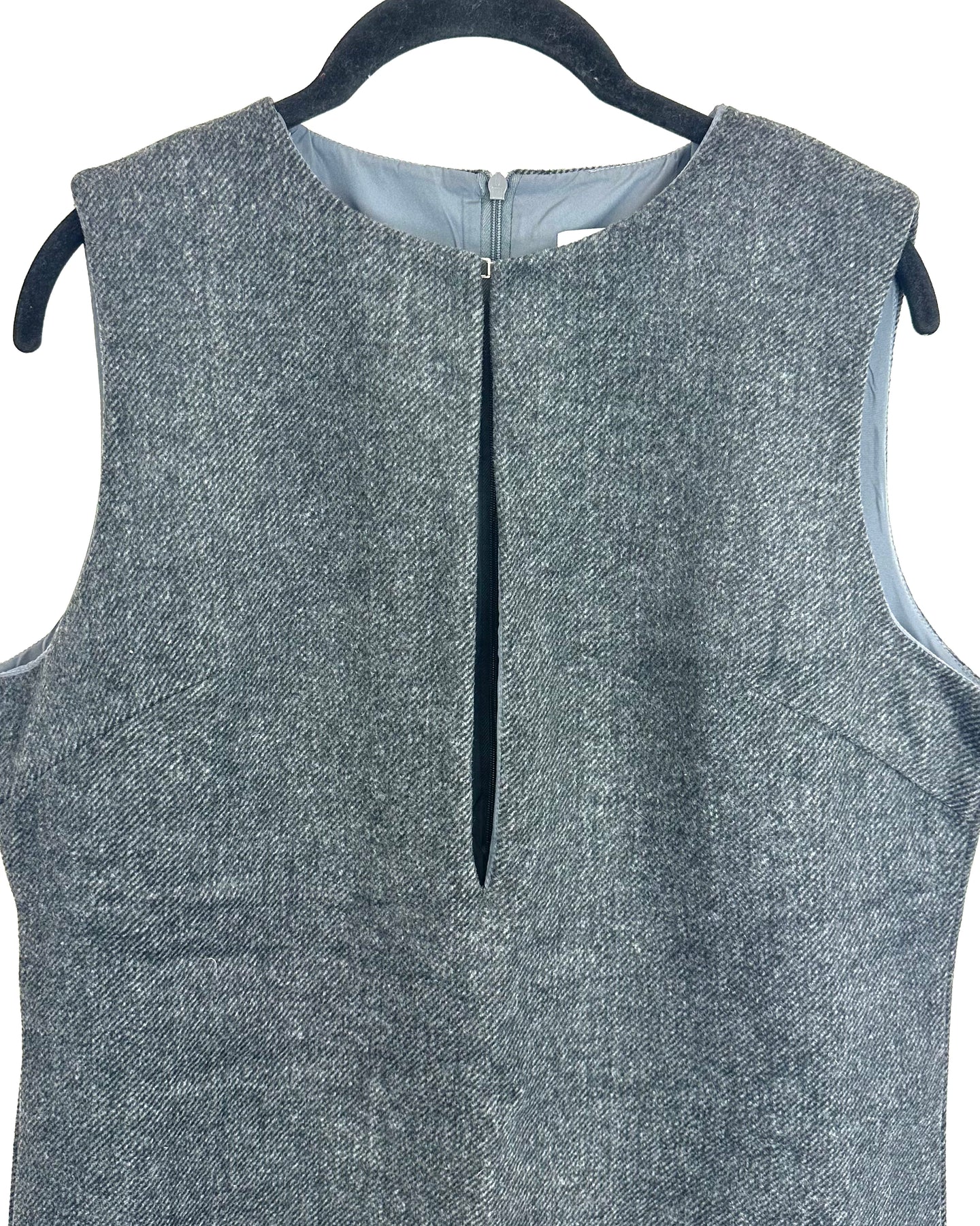 All My Love dark grey wool sleeveless dress with a keyhole neckline that can be made into a v-neckline and back hidden zipper closure