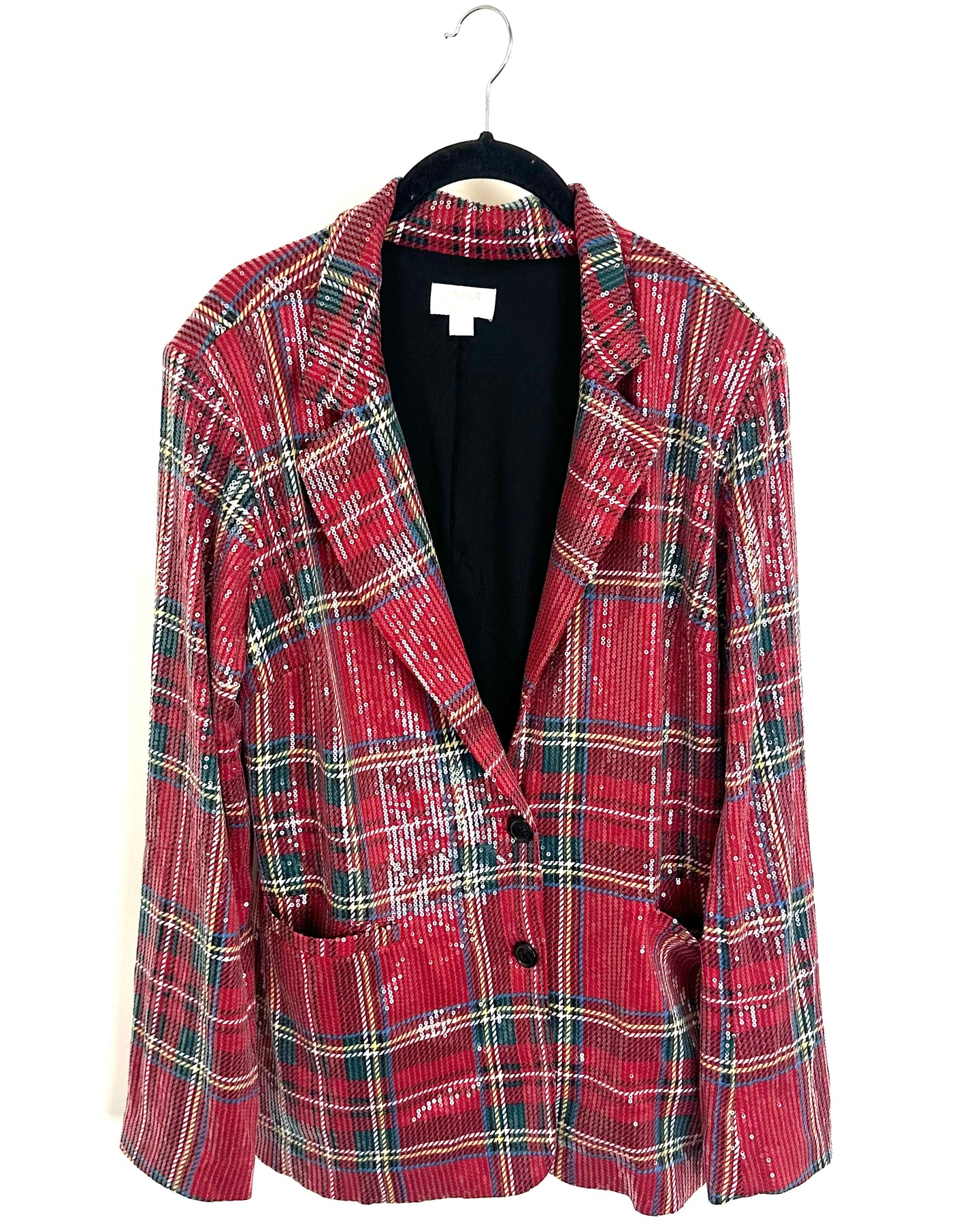 Kim Gravel sequined plaid blazer, with a 2-button front opening, 2 front pockets, with polyester lining, very lightweight and comfortable