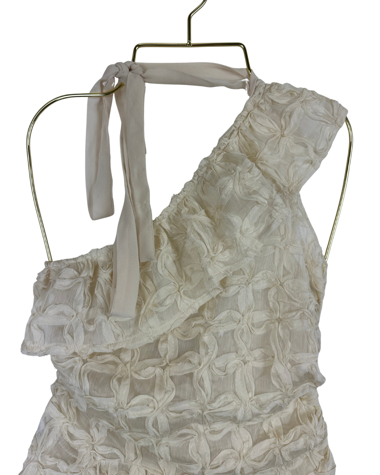 House of sunny sheer applique top with ruffle bottom hem, one shoulder sleeve, slightly stretchy and comfortable