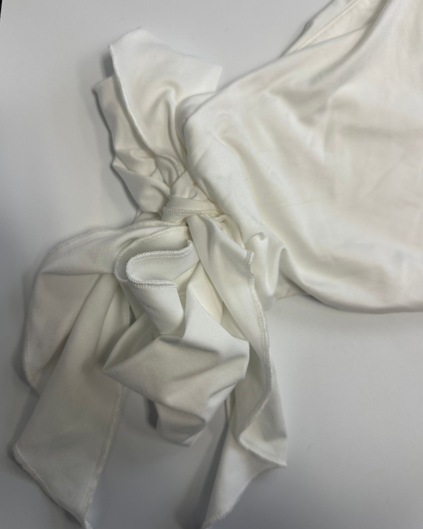 Lovers and Friends white one shoulder top in a cropped silhouette with rosette shoulder detail and side fabric tie detail