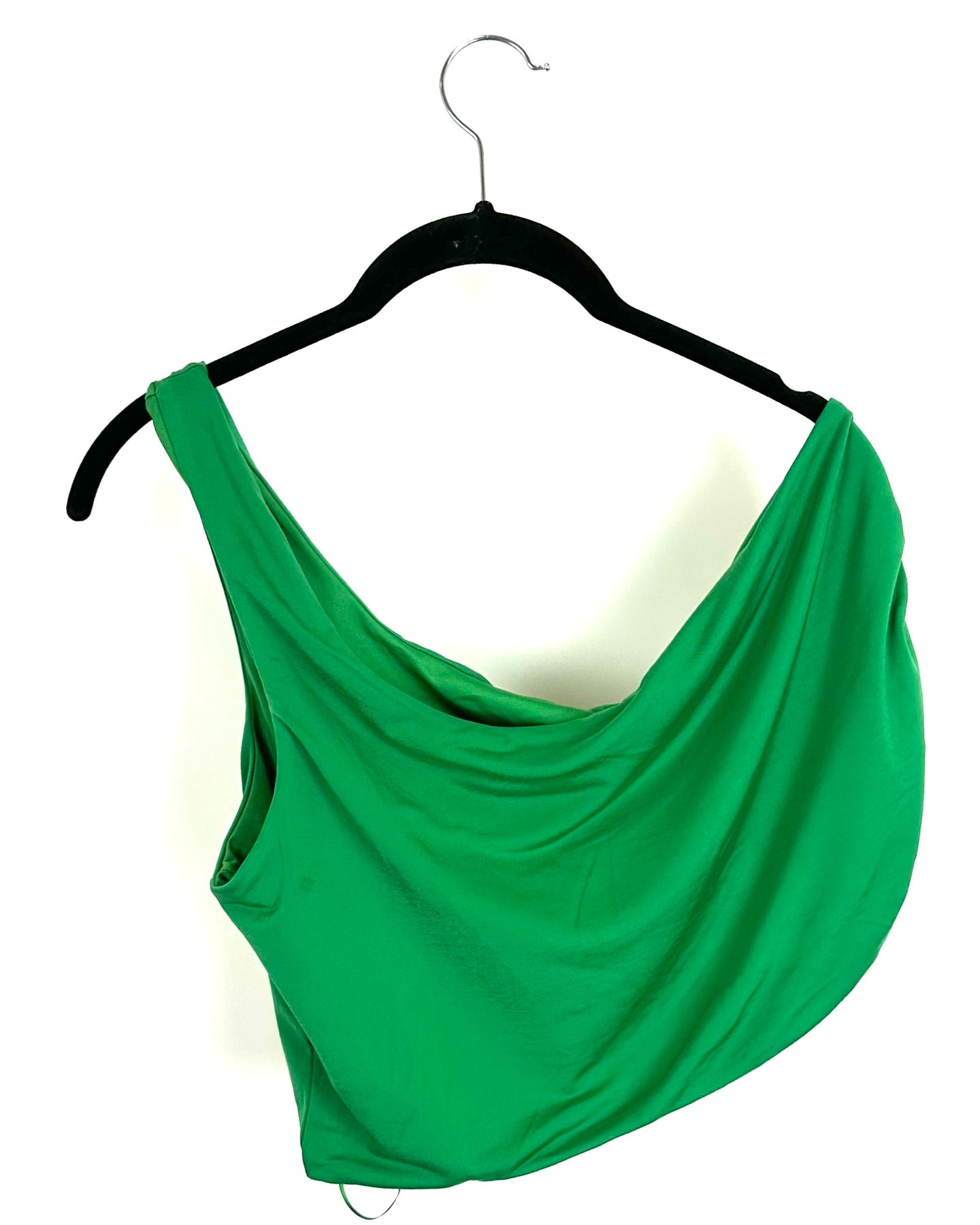 Remi x Revolve bright green crop top in a stretchy fabric with one shoulder and side ruching