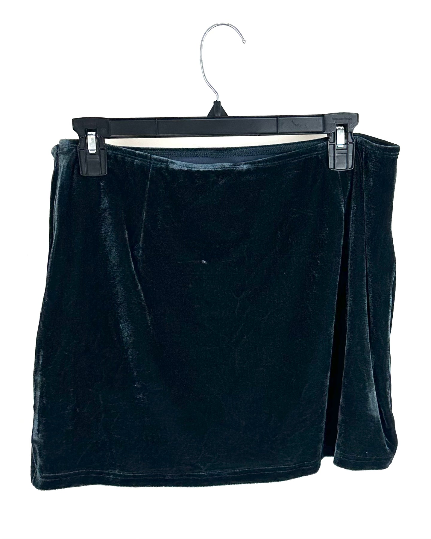 Superdown navy blue velour mini skort with a elastic stretch waistband, side zipper and built in shorts in a stretchy fabric