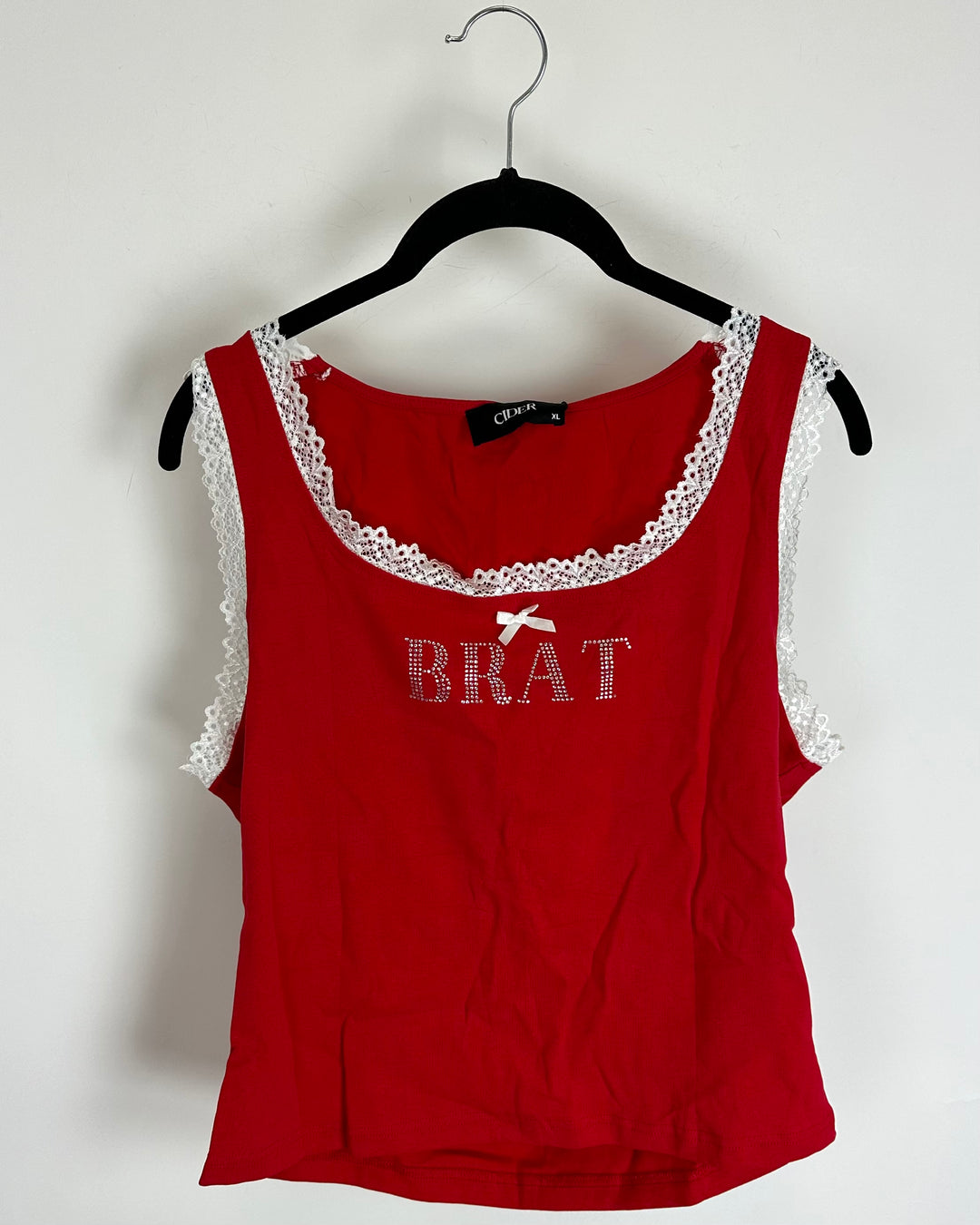 Red Lace Trimmed "Brat" Tank Top - Extra Large