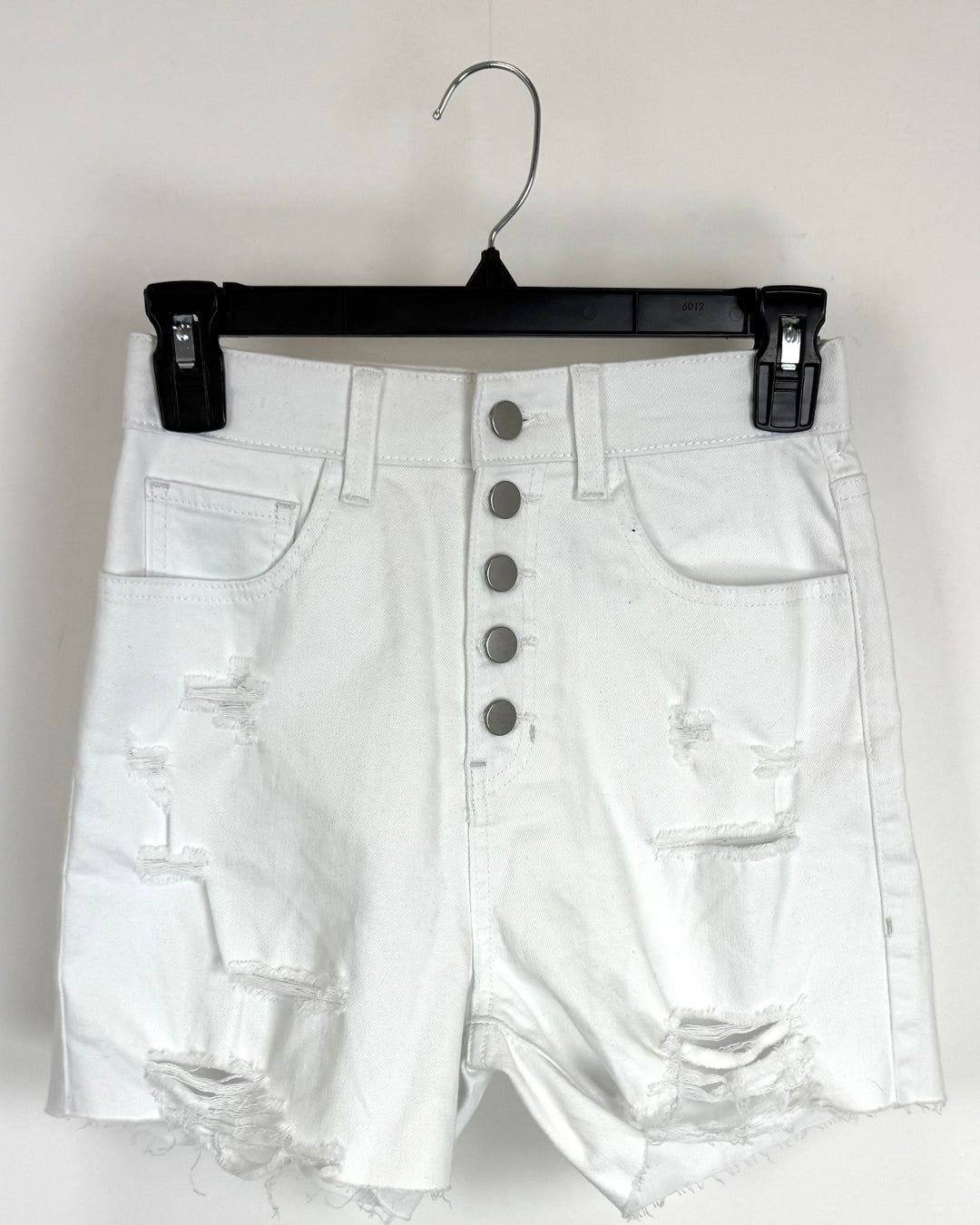 White High Waist Distressed Shorts - Size 0/2