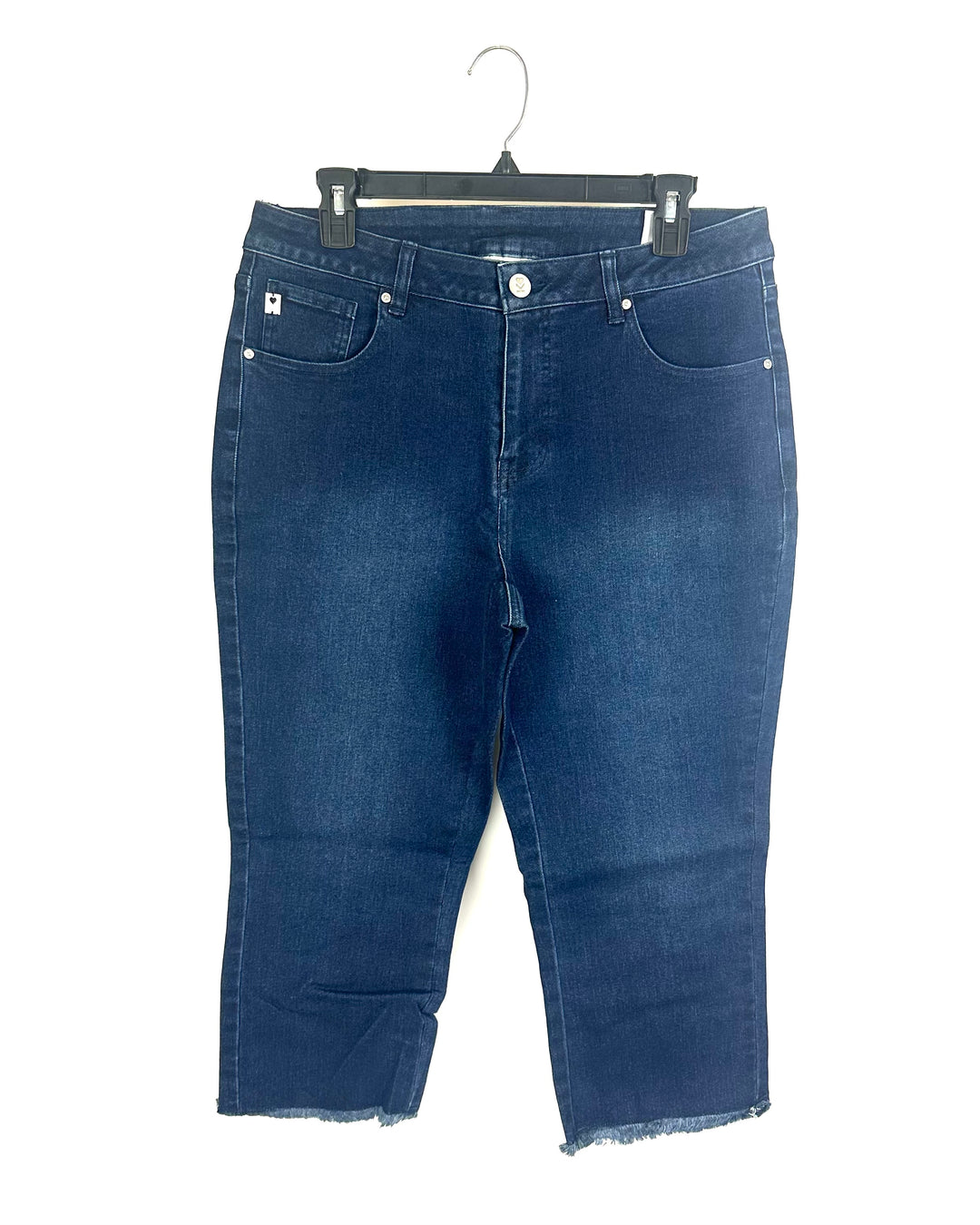 Midnight Blue Frayed Asymmetrical Hem Jeans - Size 12
