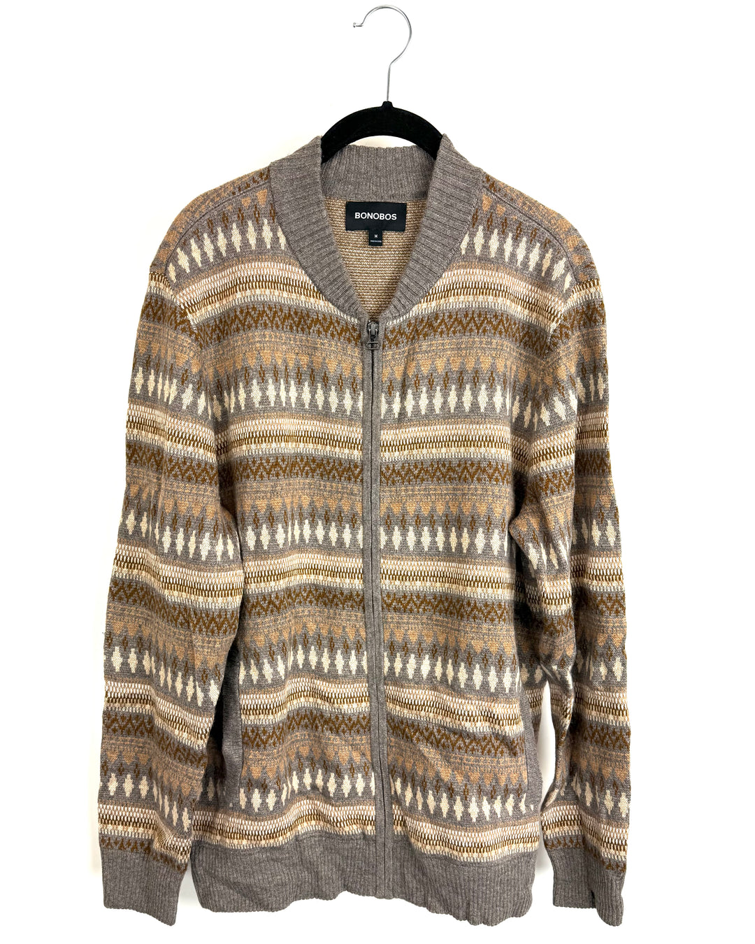 Gray & Brown Zip Up Knit Jacket - Mens Medium / Womens Large