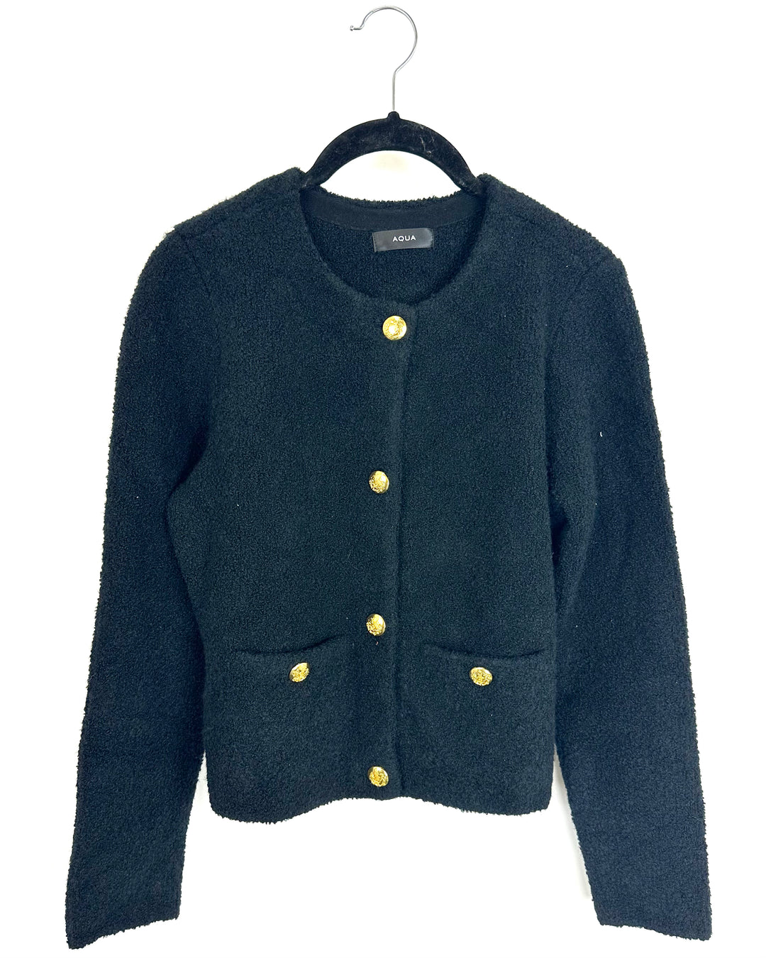 Black Cardigan With White And Gold Buttons - Size 2/4
