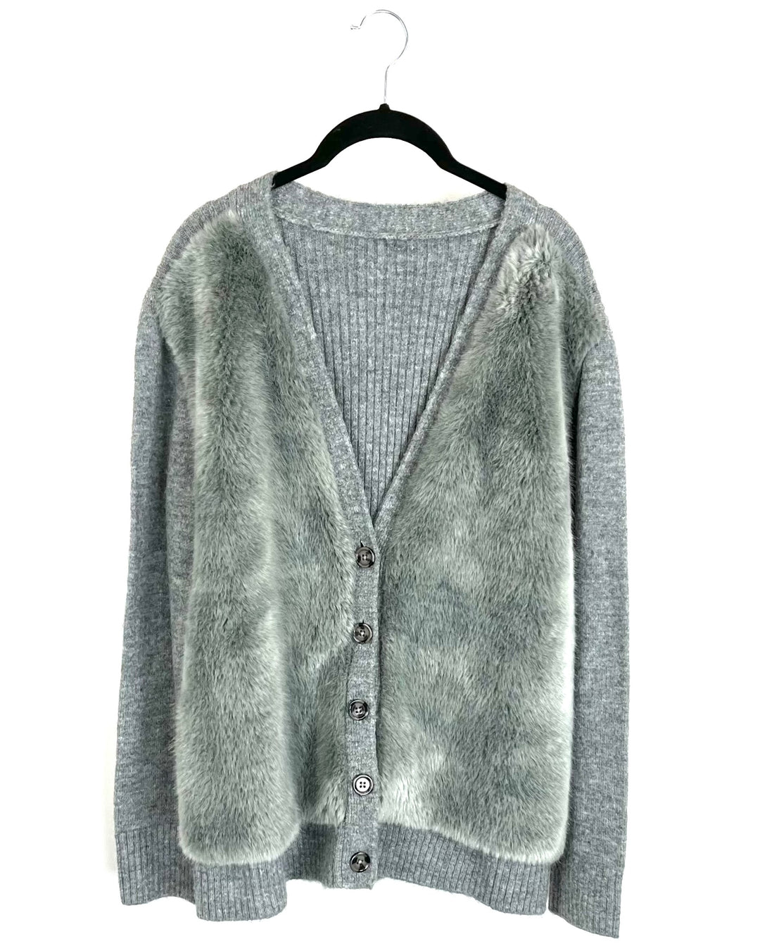 Fuzzy Gray Faux Fur Cardigan - Size 6/8