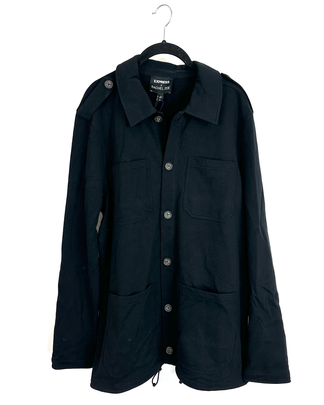 Oversized Black Button Up Shirt Jacket - Size 4/6