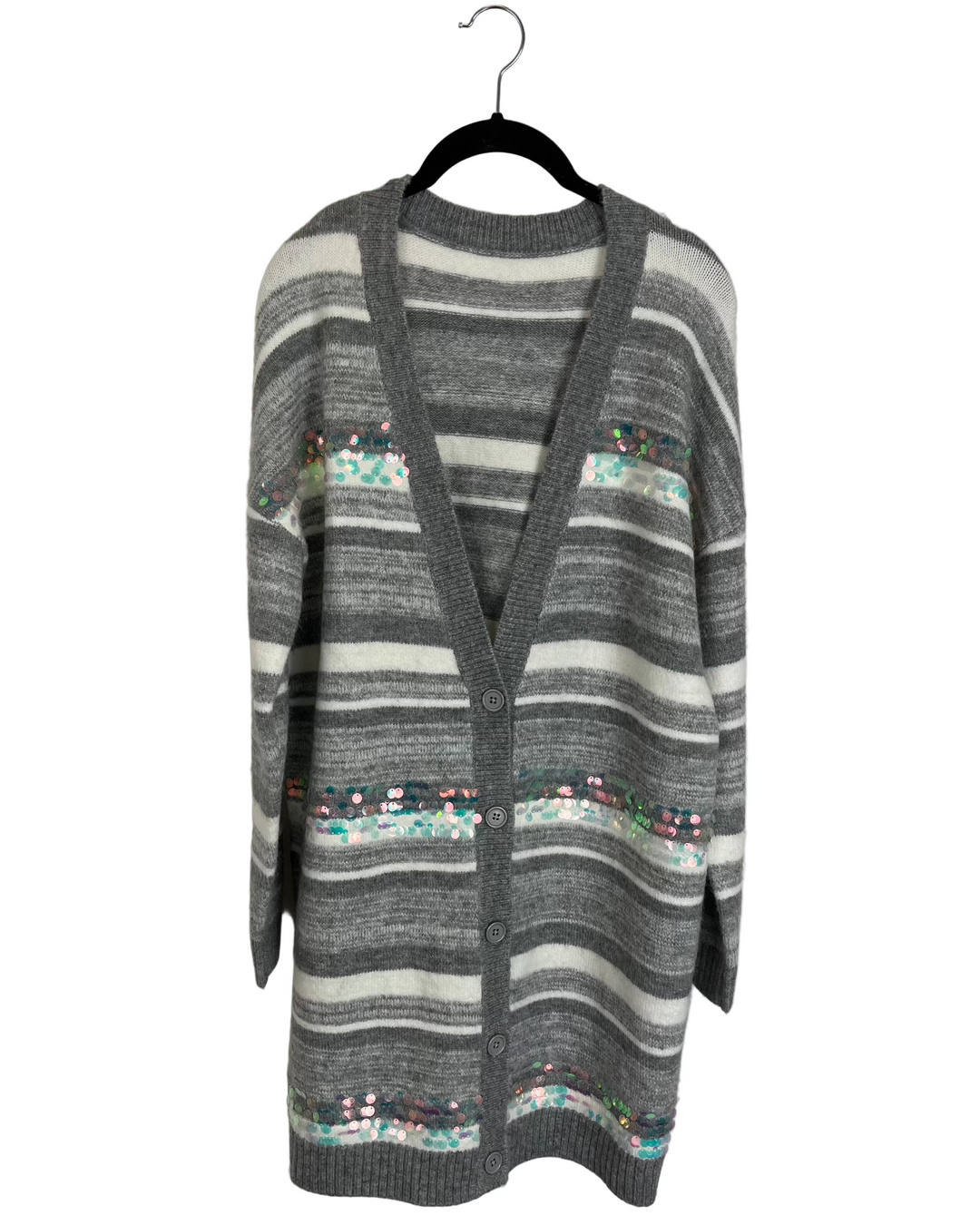 Cream Sequin Quarter Zip Sweater - Size 8/10