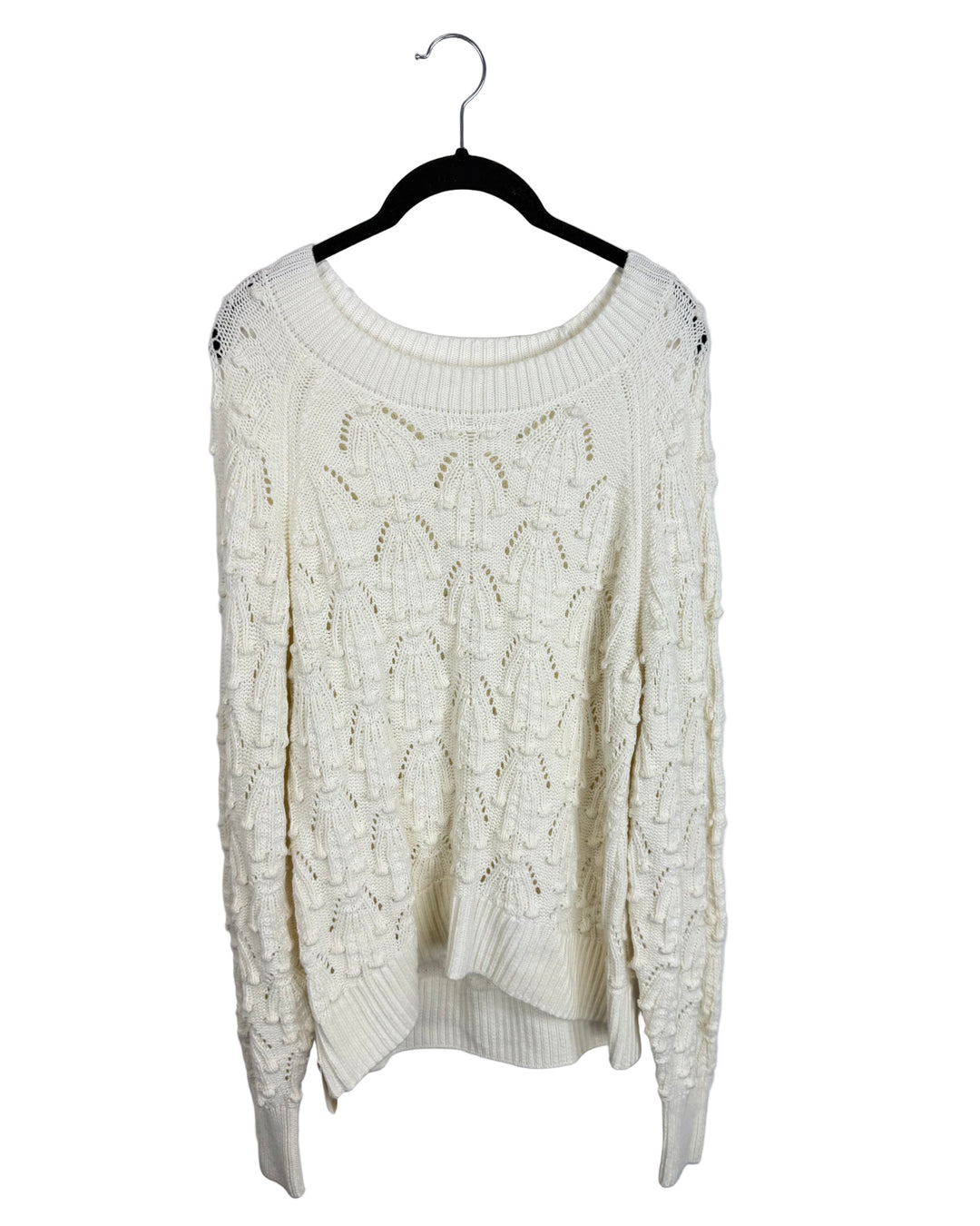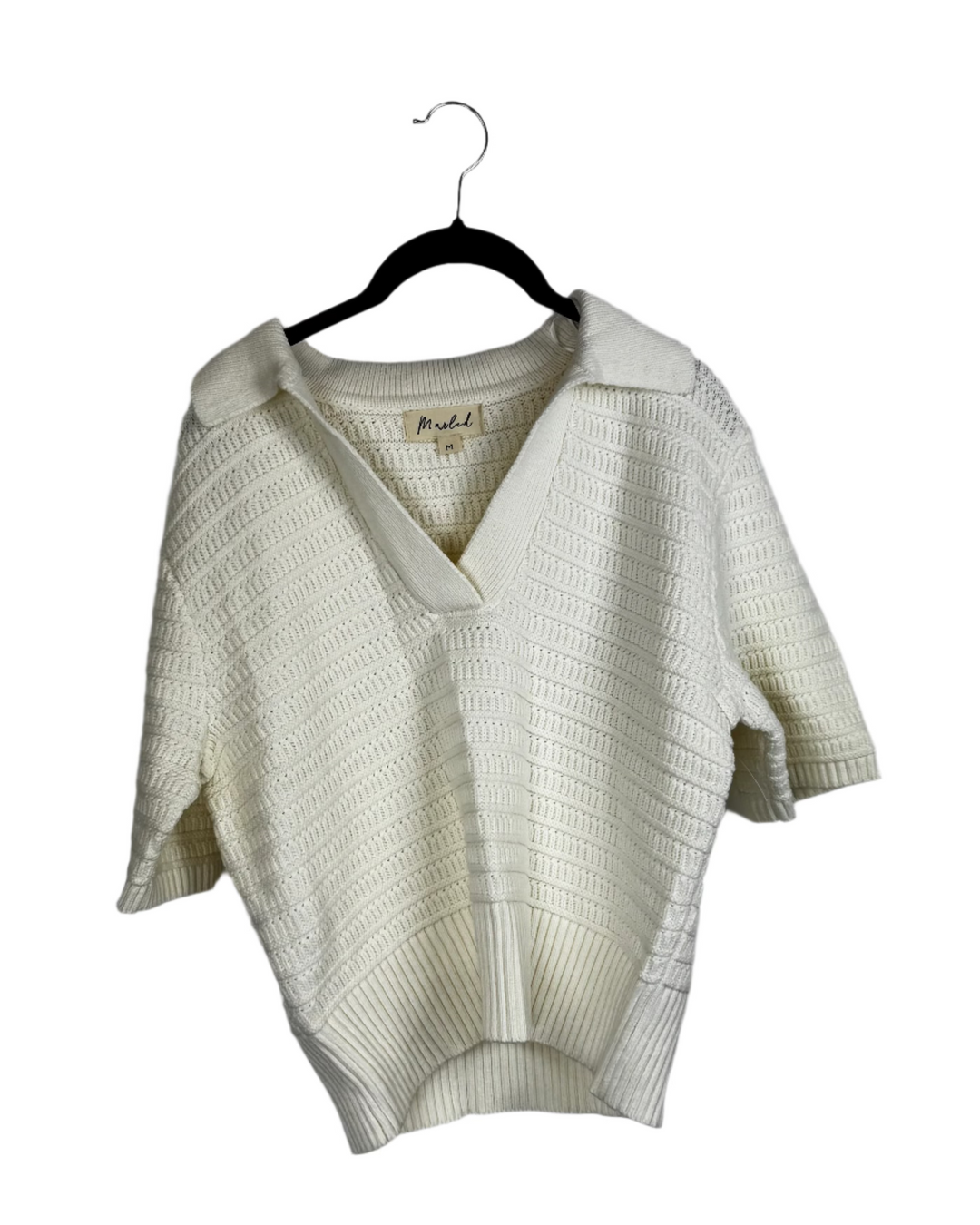 Cream Knit V-Neck Short Sleeve Sweater - Medium