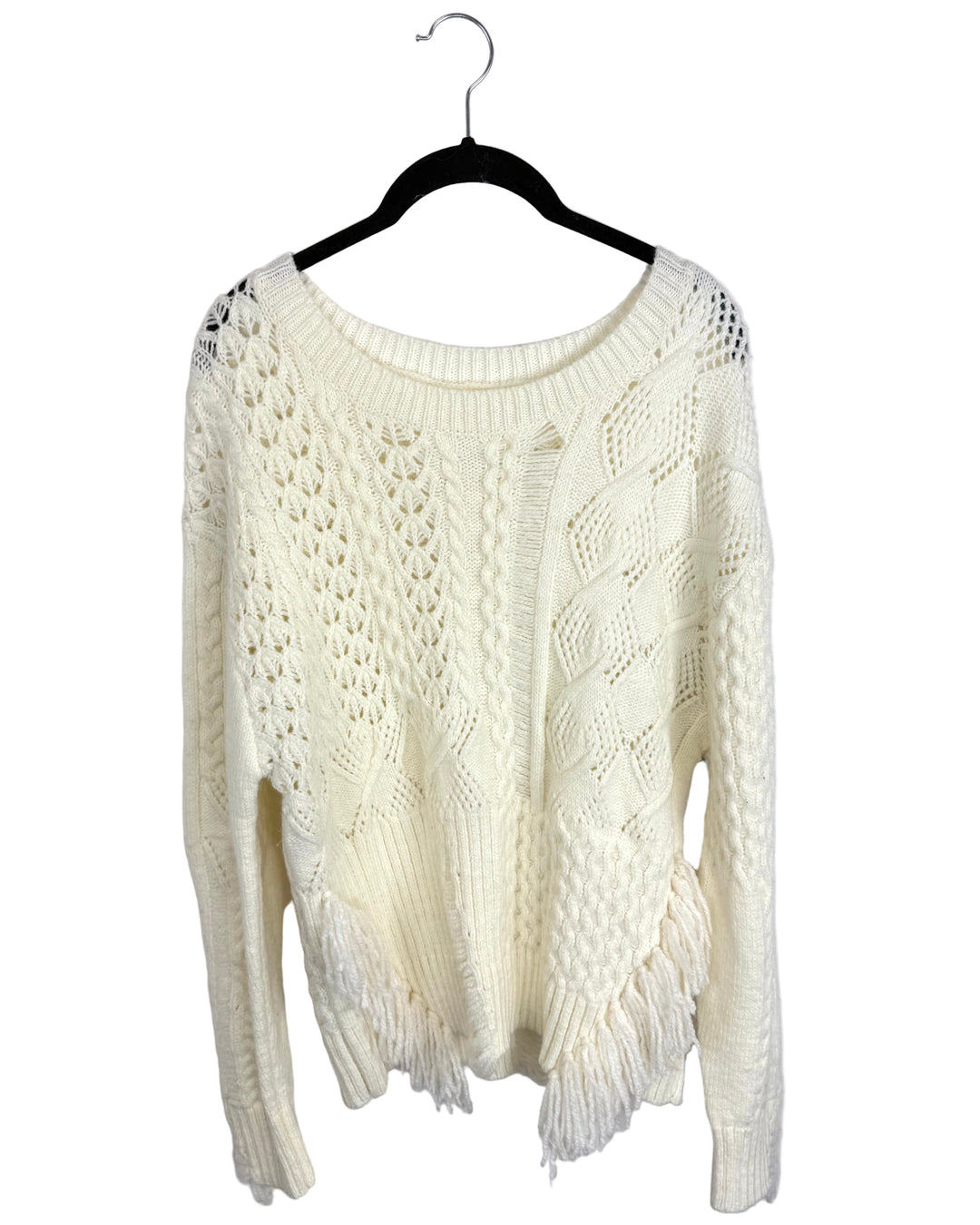 Cream Pink and Blue Chunky Knit Sweater - Size 1X