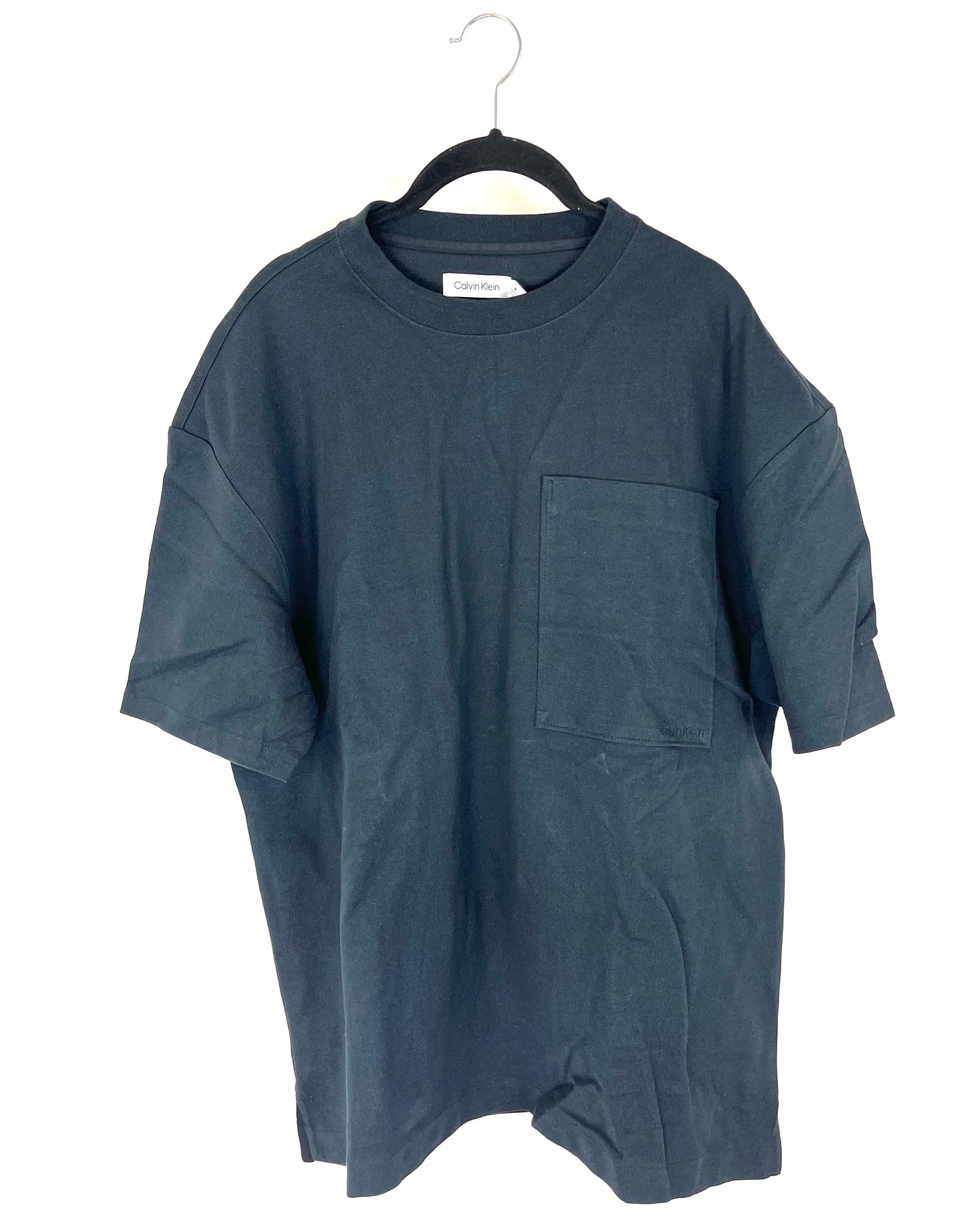 MENS Calvin Klein black structured t-shirt with front pocket and thick cotton jersey material.