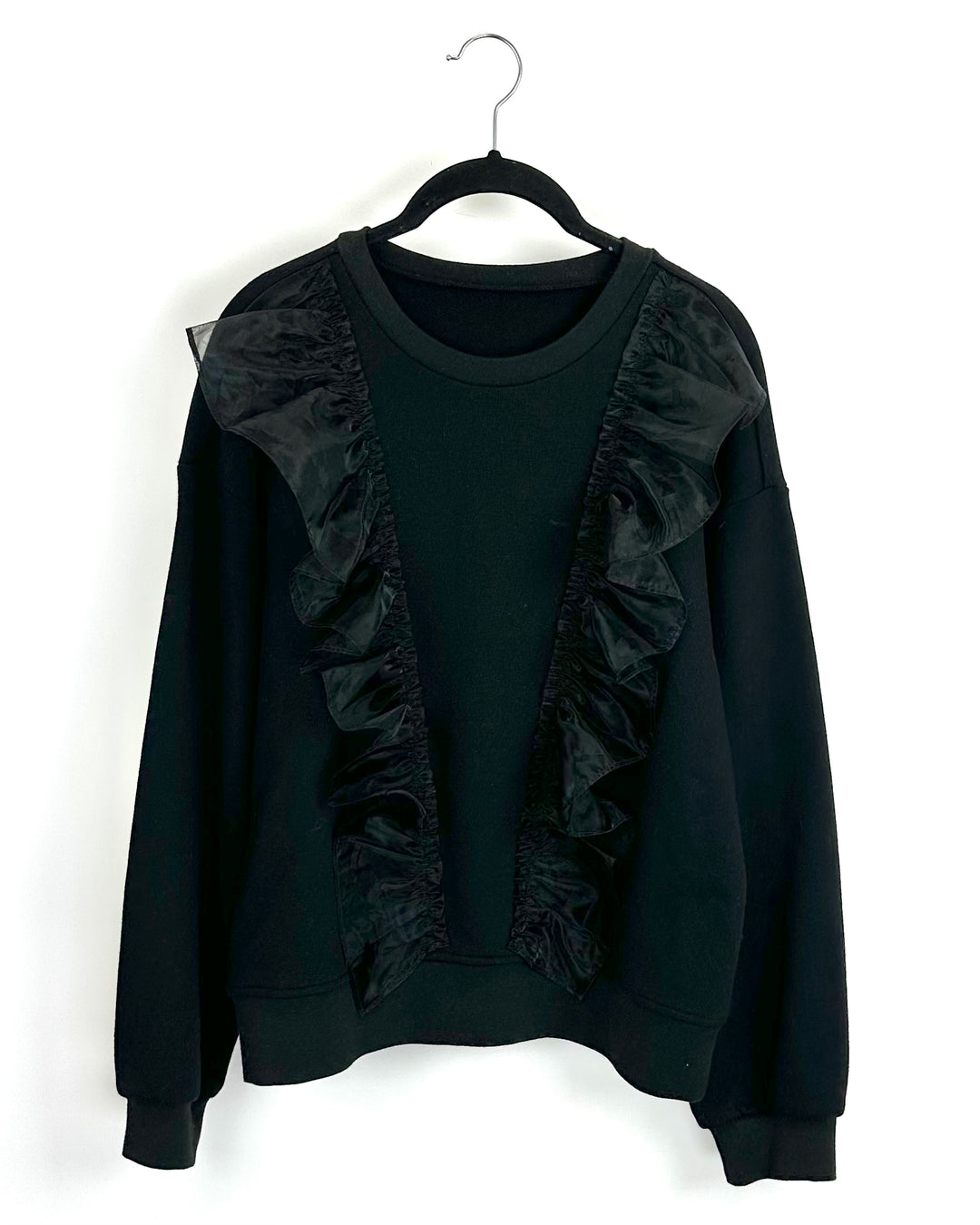 Black Sweatshirt with Mesh Ruffle - Size 2/4