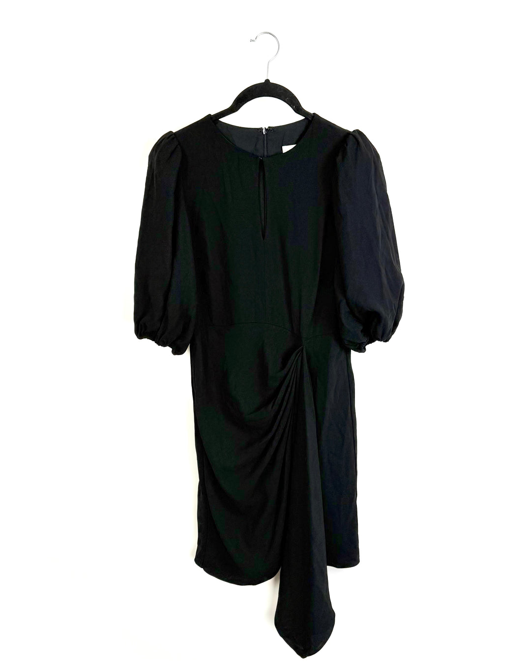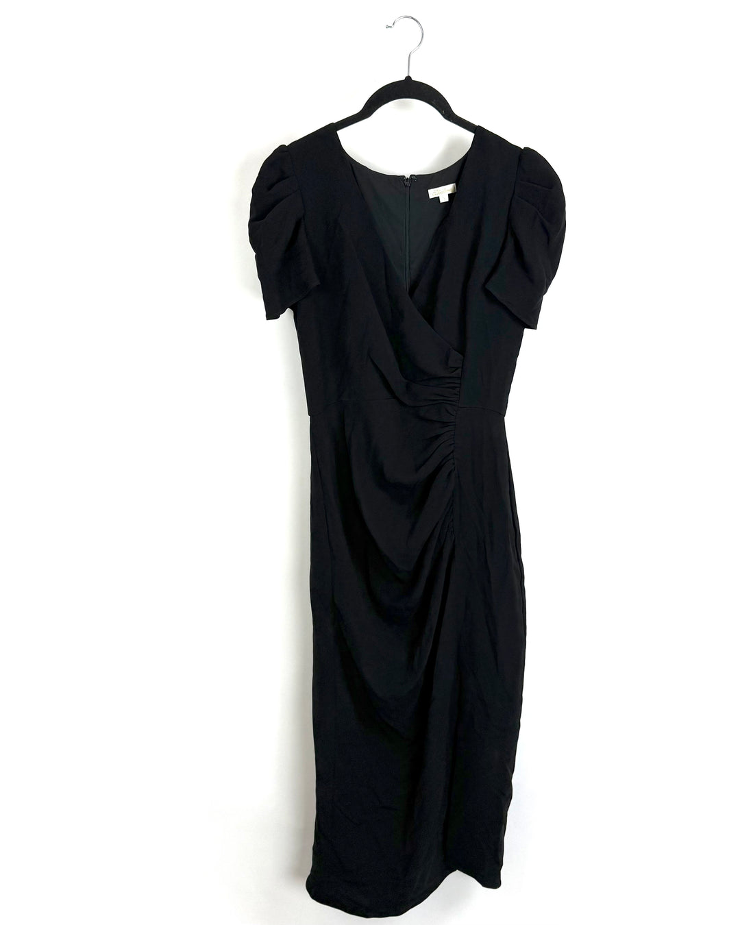 Black V Neck Short Sleeve Ruffle Dress - Size 4