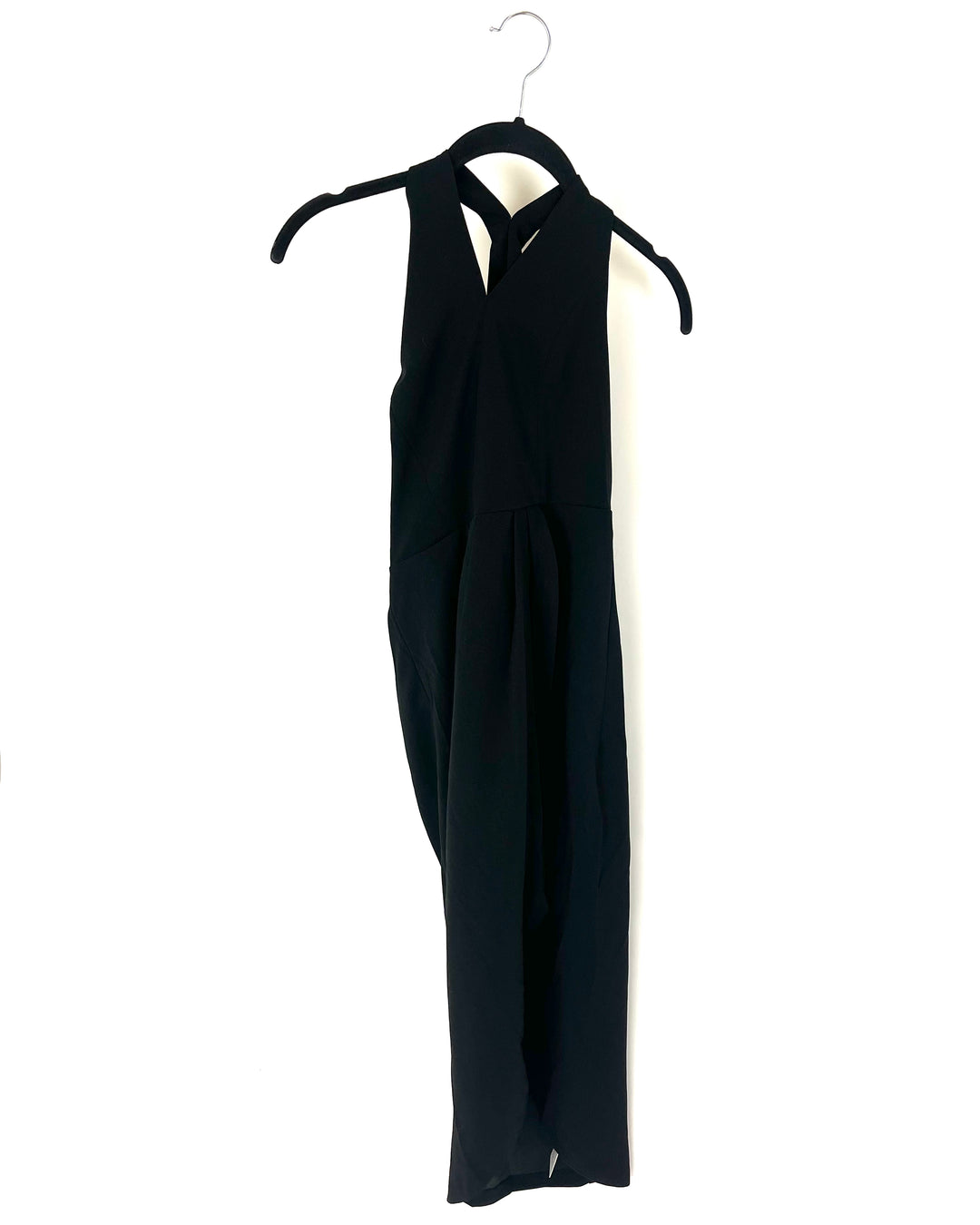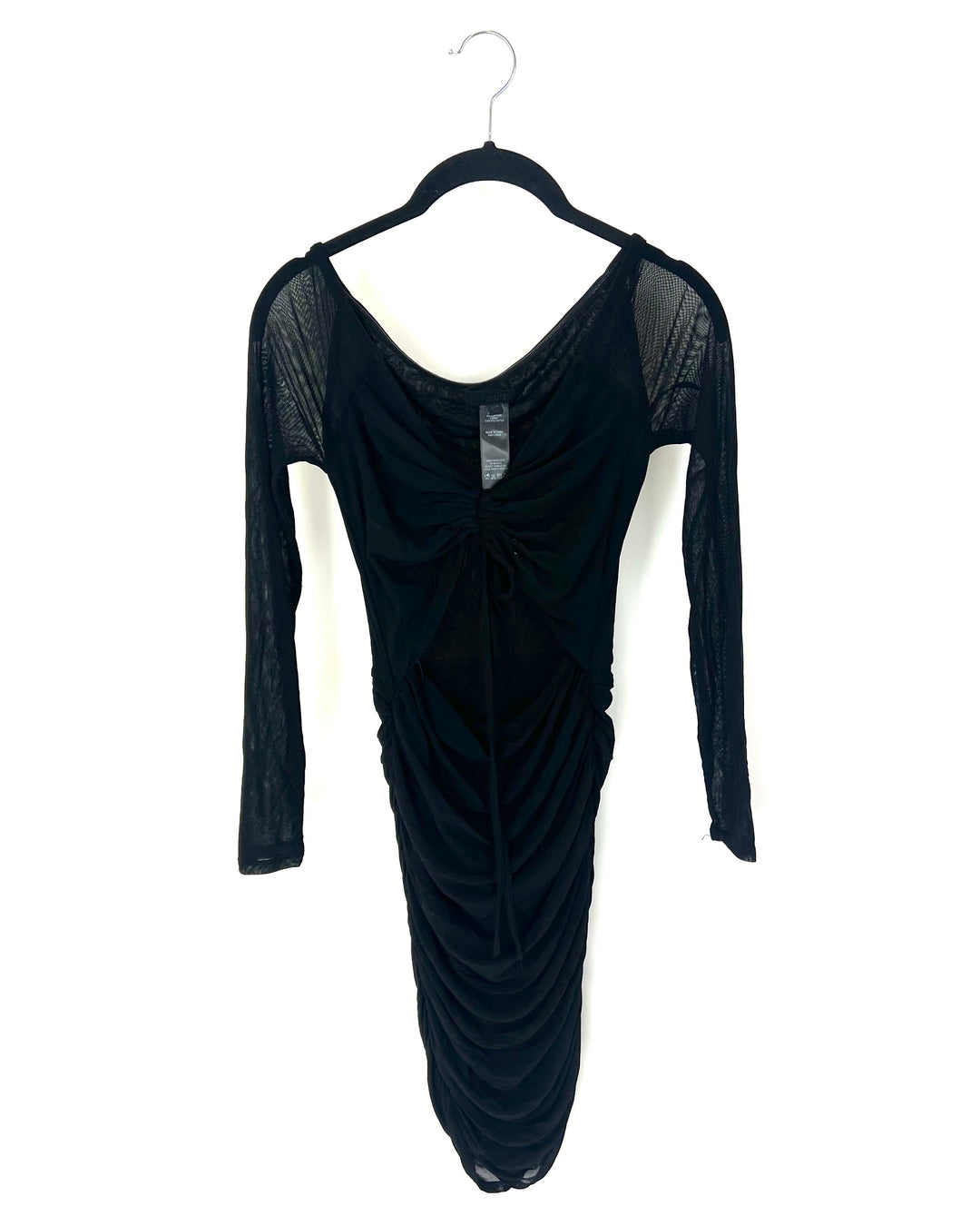 Black Long Sleeve Black Dress with Ruching - Size 2