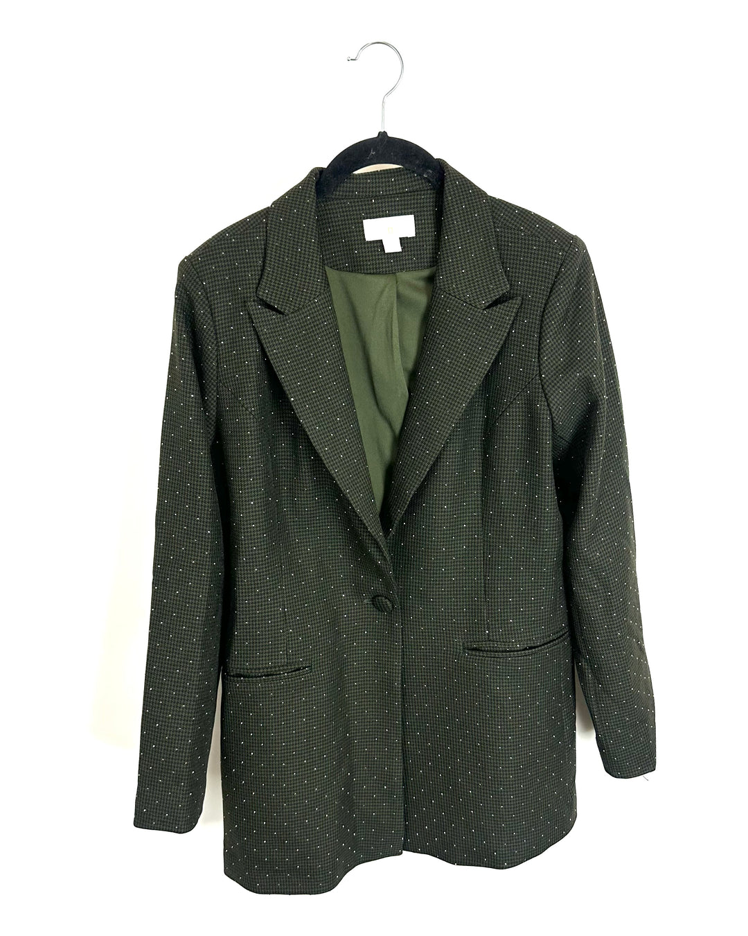 Olive Green Blazer With Shoulder Pads - Size 4/6