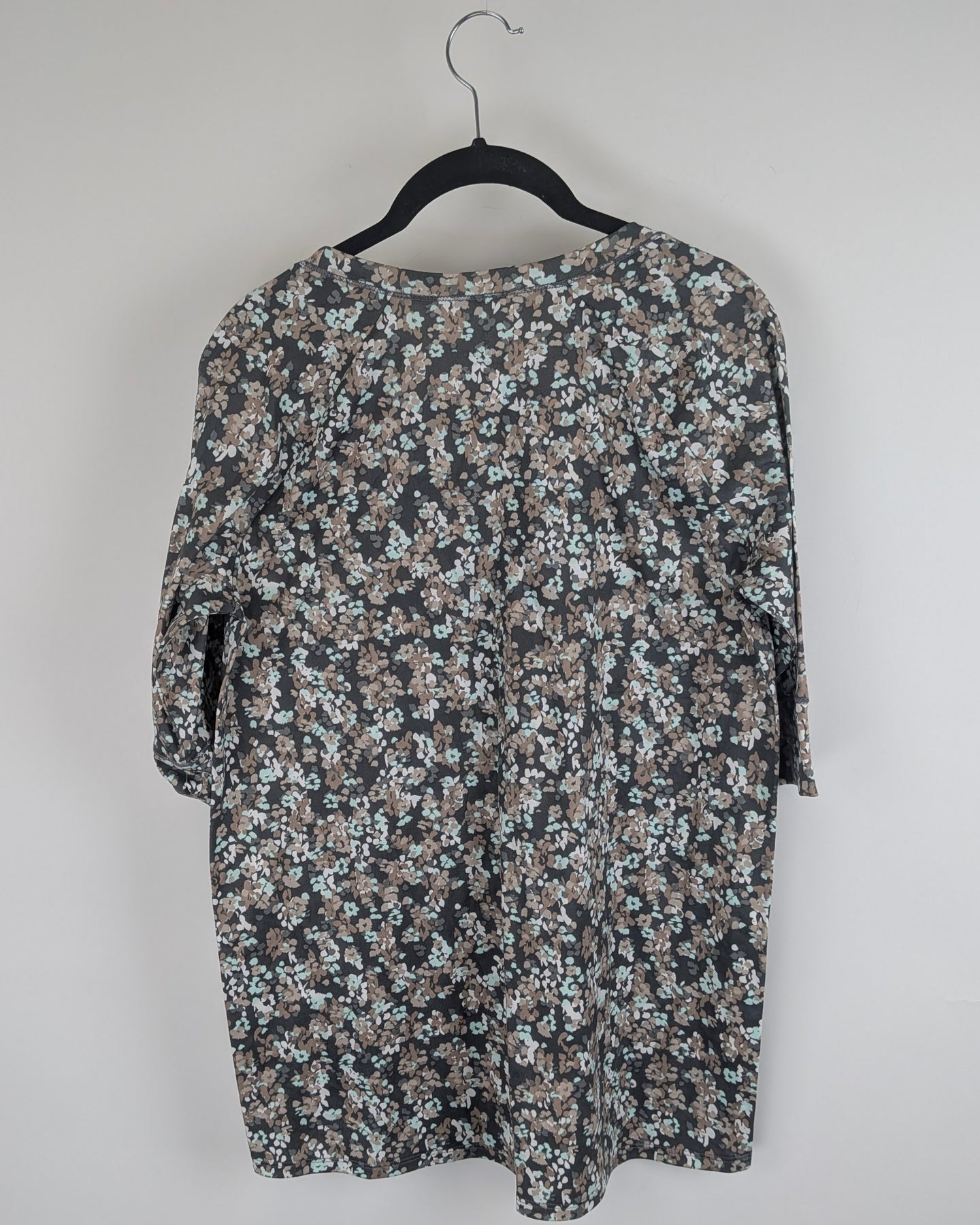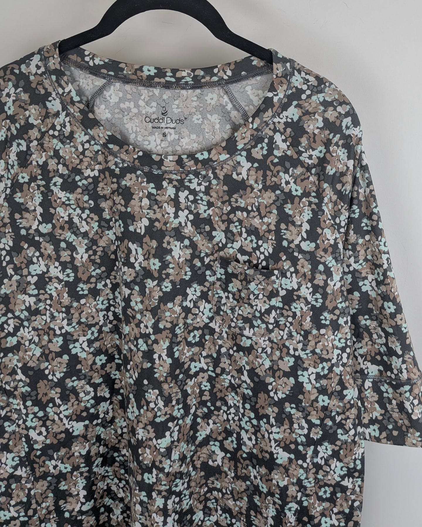 Cuddl Duds brown floral lightweight pajama top with 3/4 sleeves and front chest pocket