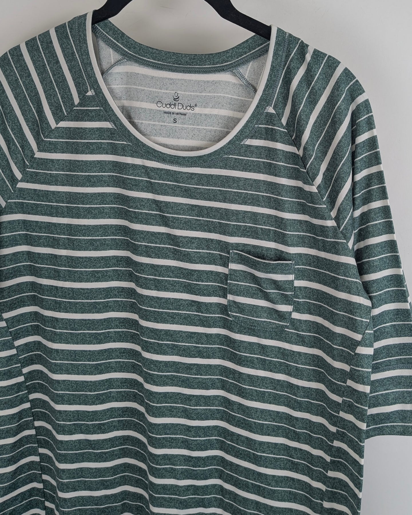 Cuddl Duds green striped lightweight pajama top with 3/4 sleeves and front chest pocket