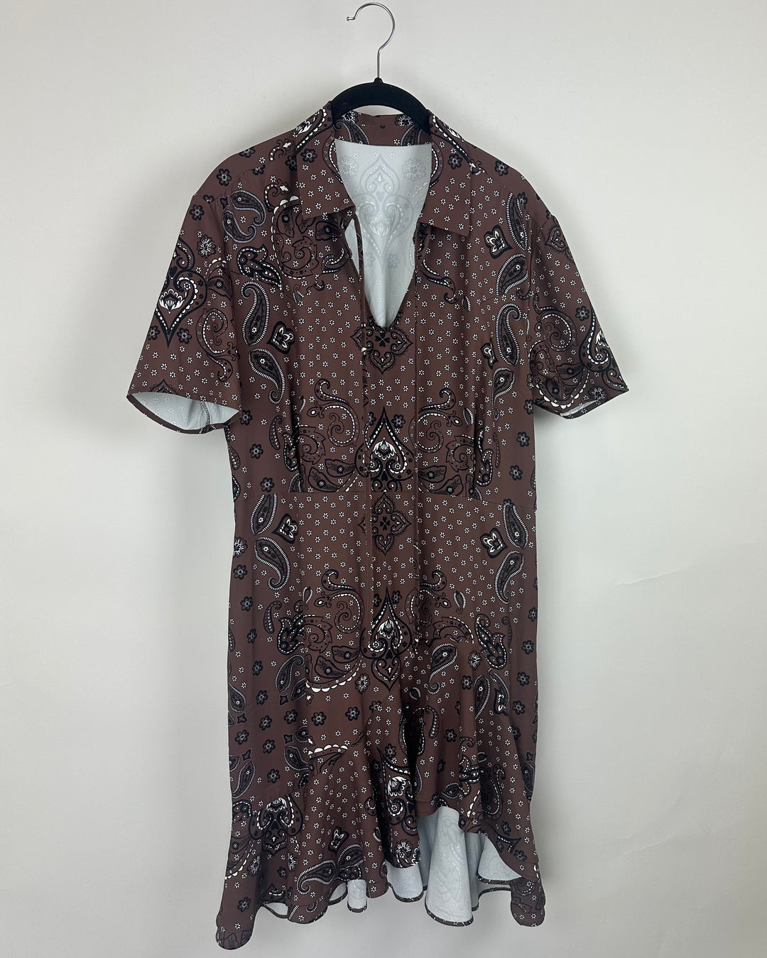 Black Leopard Print Cropped Sleeve Dress - Size 4