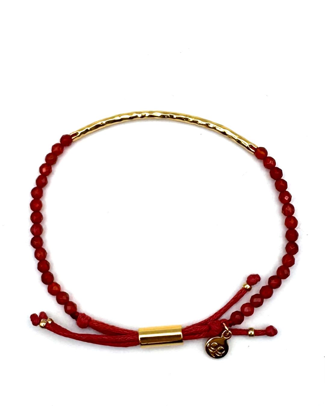 Dark Burgundy Beaded and Gold Bar Bracelet