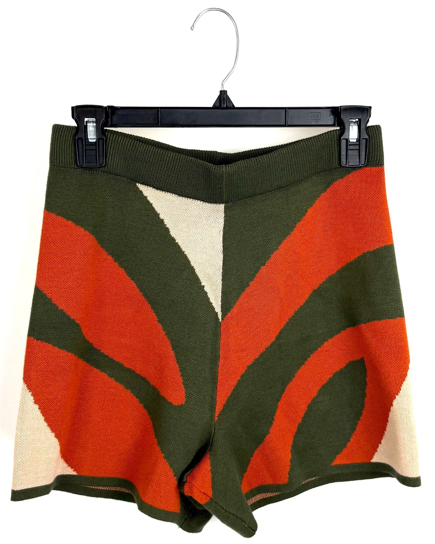 Almost Famous green, orange and beige knit elastic pull-on shorts.