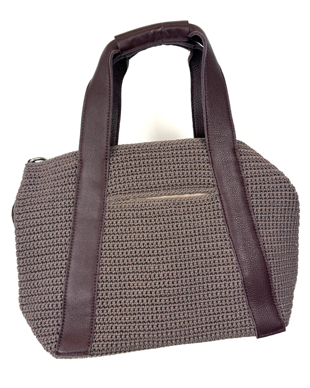 Light Tan and Pink Crochet Shoulder Bag With Floral Charm