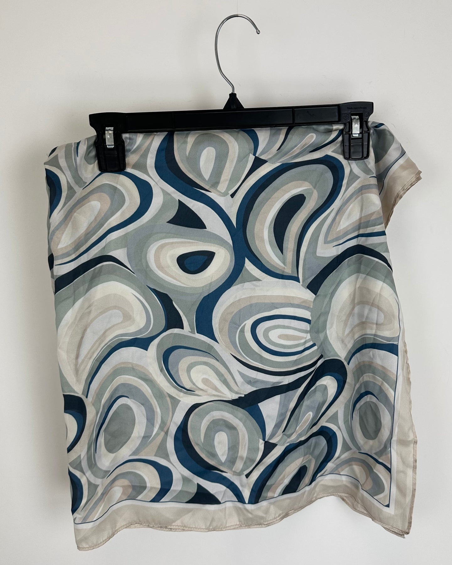 Steve Madden beige, blue, and green swirl print, lightweight, square scarf