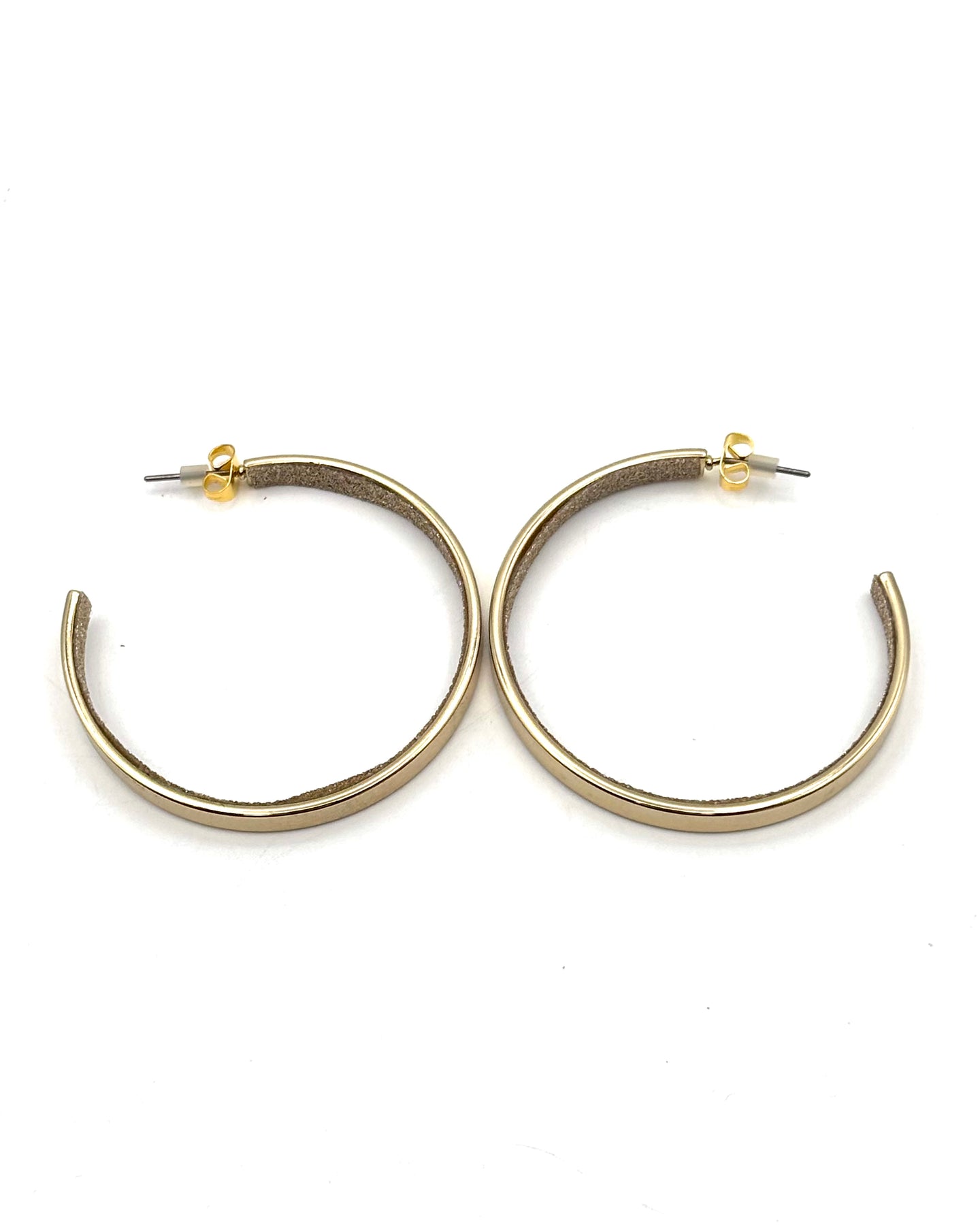 Thick gold hoops with glitter on the inside of the hoops, with a backing stud