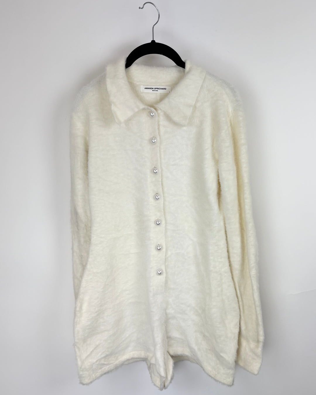 Amanda Uprichard Cream Brushed Faux Fur Romper - Small