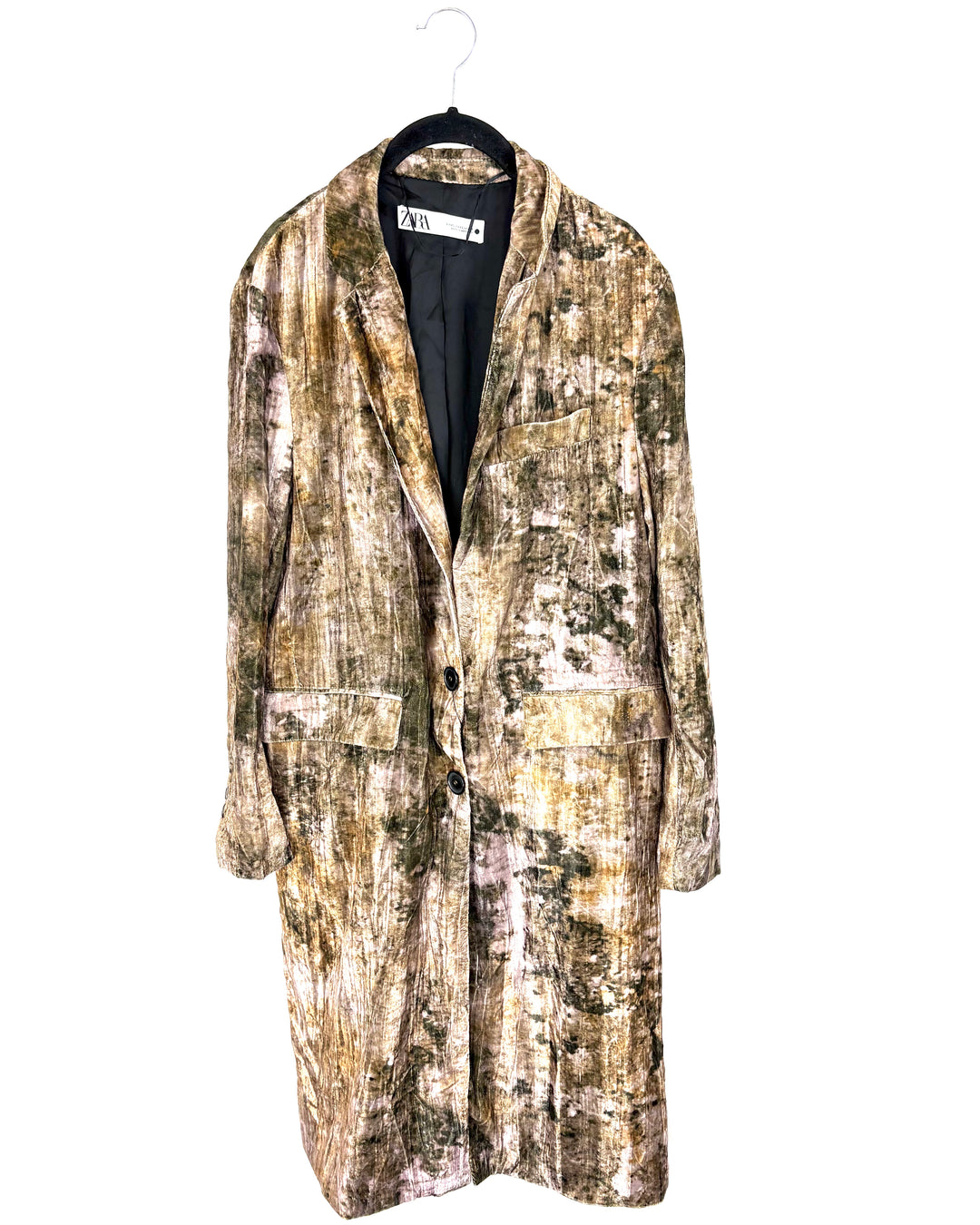 ZARA Printed Velvet Blazer Coat - Extra Small