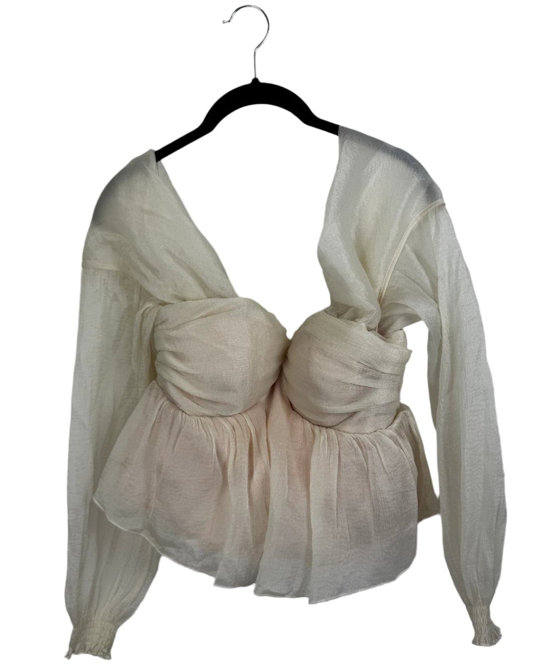 House Of Harlow Ivory Cropped Long Sleeve Blouse - Small