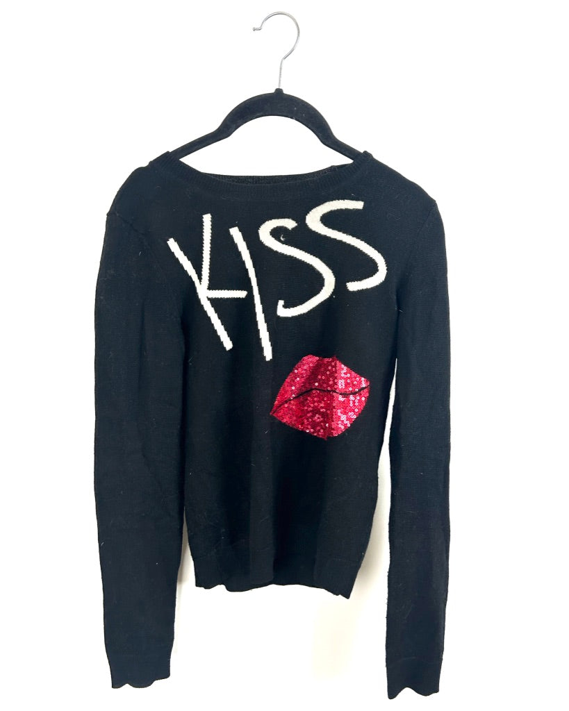 Markus Lupfer Black Sequin Lips Sweater - Small