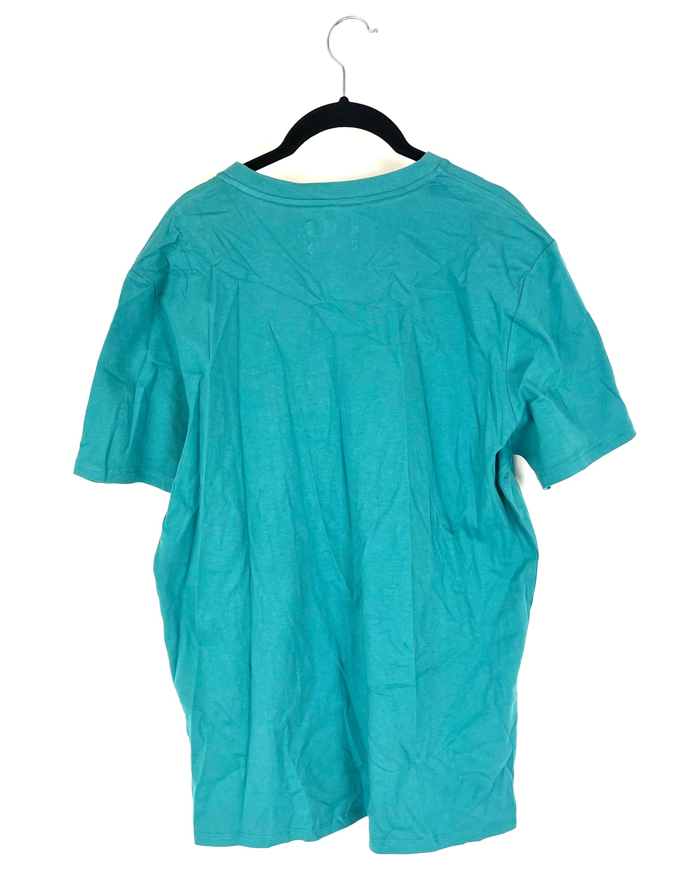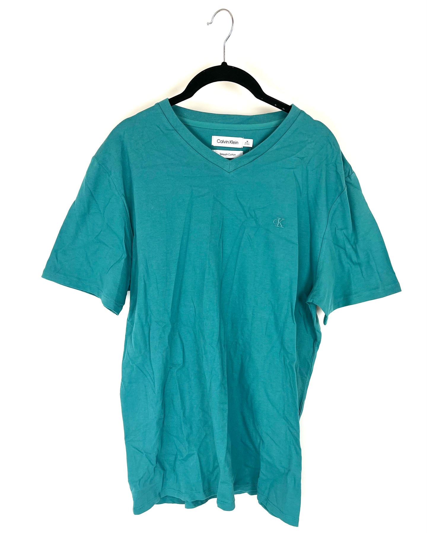 MENS Calvin Klein teal v-neck t-shirt with small logo on front and relaxed style fit.