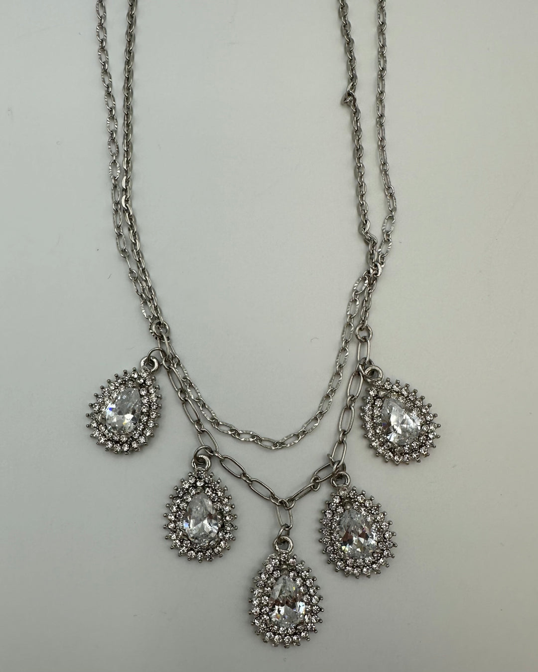 Gold Necklace with Purple and Teal Pear Shaped Design