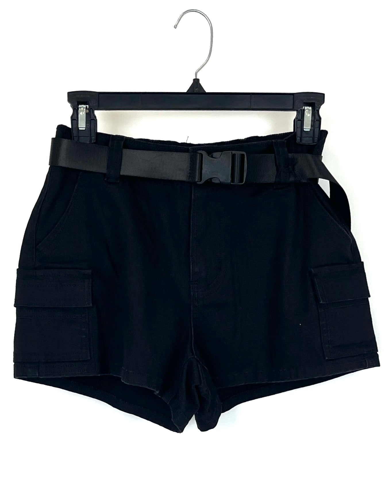 Black Cargo Shorts With Buckle Belt -Size 2/4