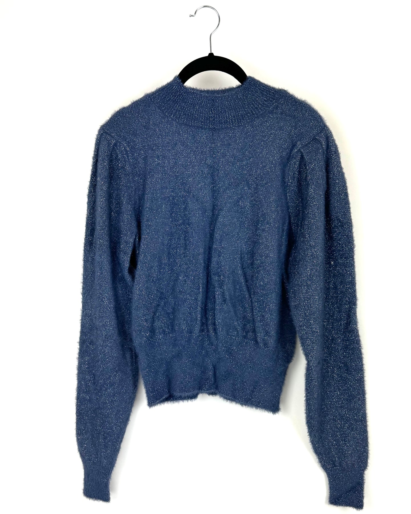 Almost Famous super soft blue and silver sweater with a mock neck in a comfortable, fuzzy material