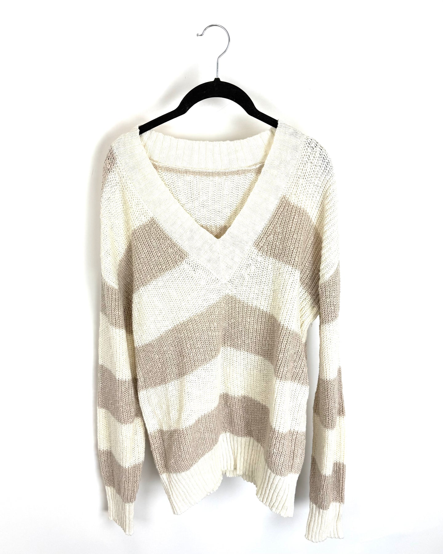 Reunited cream and taupe stripped knit sweater with v-neckline