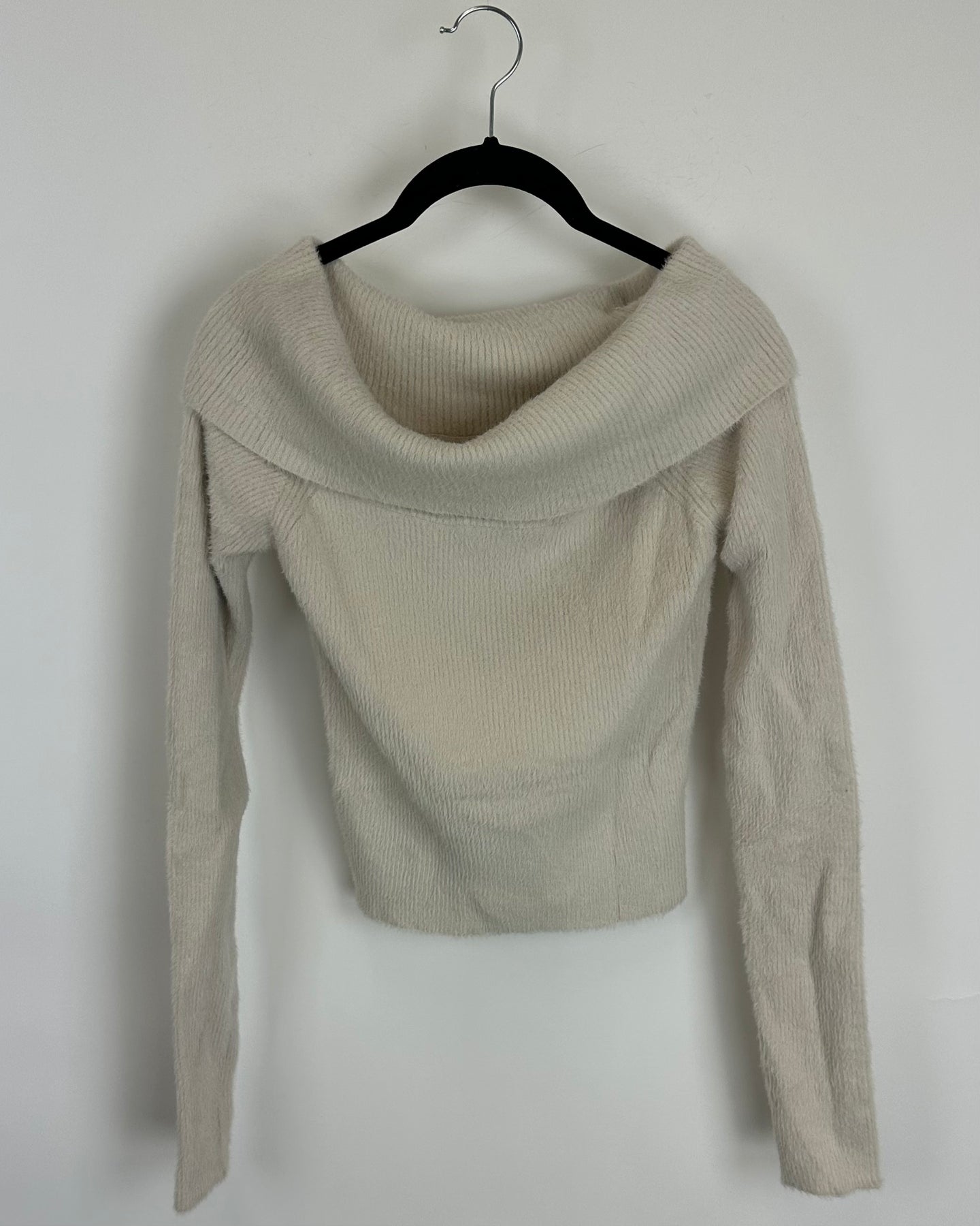 Reunited cream off the shoulder sweater, long sleeves with a s soft fuzzy fabric