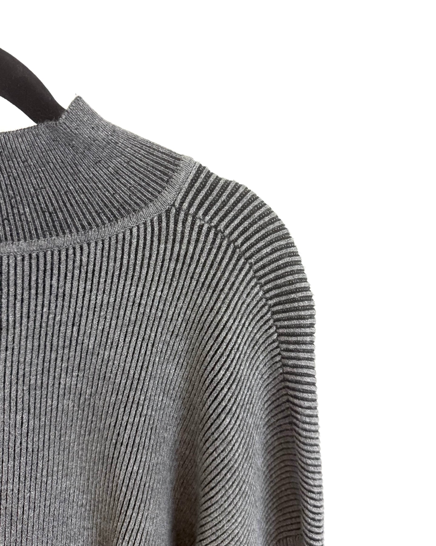 Gray cropped sweater with wide sleeves, a ribbed material and a high neck
