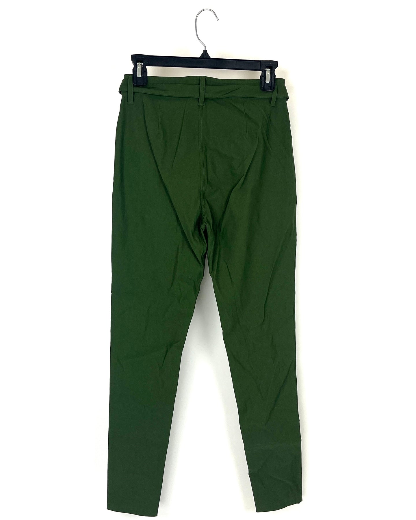 Almost Famous green high-rise skinny bottoms with front pockets, an adjustable belt, and silver buttons