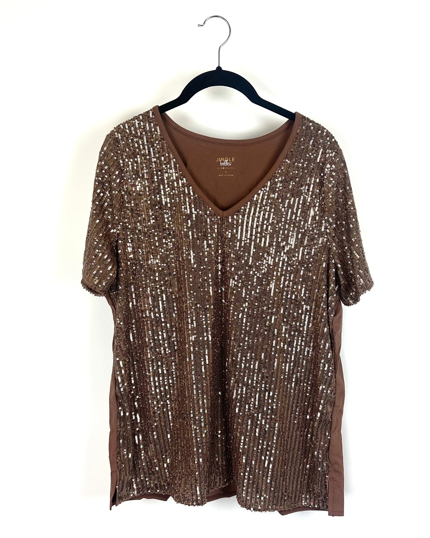 Belle by Kim Gravel light brown short sleeve top with sequin front