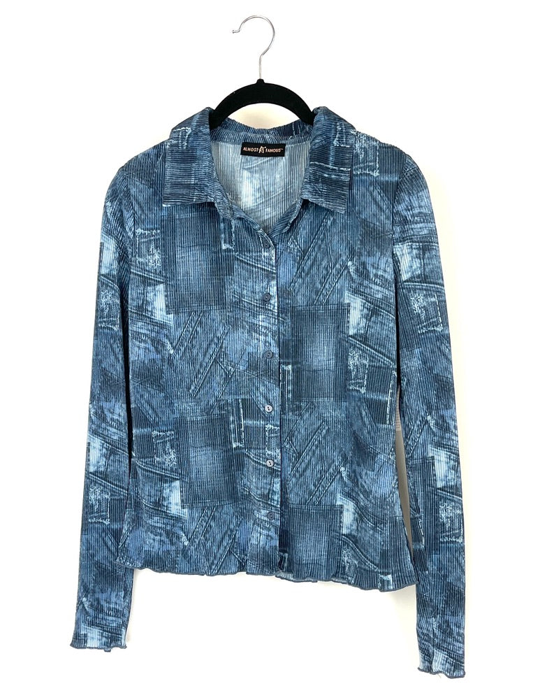 Multicolor Blue Long Sleeve Plissé Button-Up Top - Size 2/4