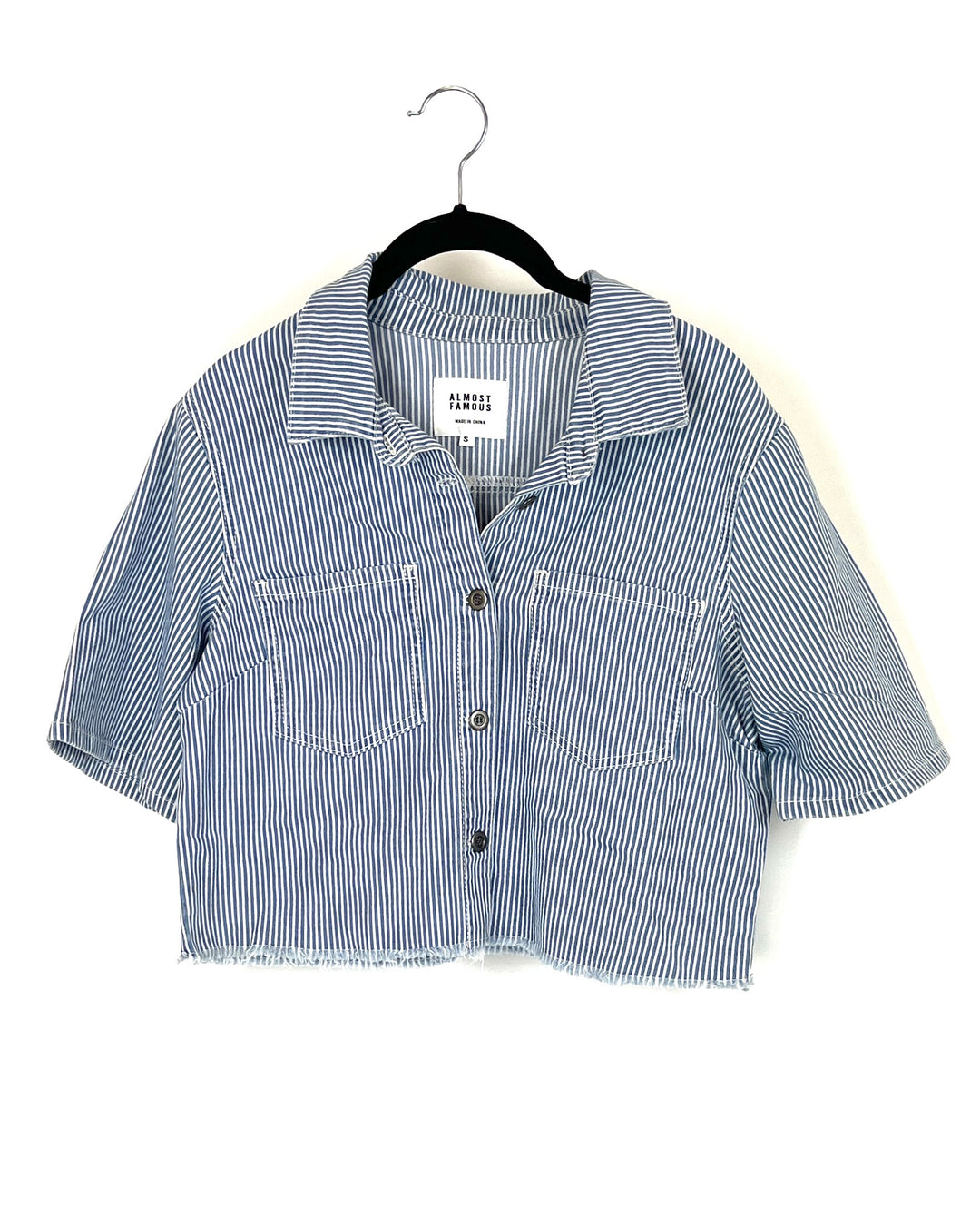 Blue Short Sleeve Plissé Button-Up Top - Size 2/4