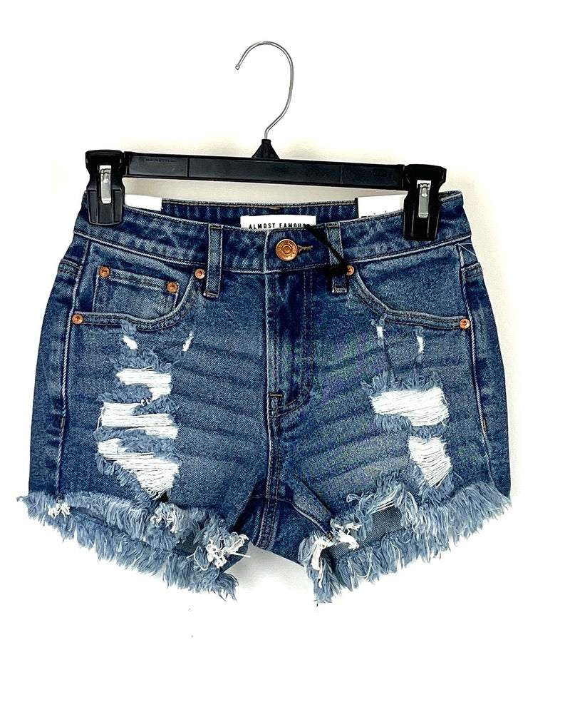 Dark Wash Denim Ripped Shorts - Size 0/2