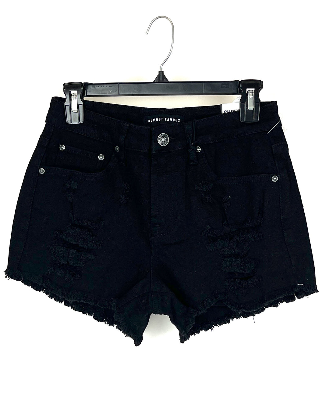 High Rise Black Distressed Denim Shorts - Size 0/2 and 2/4