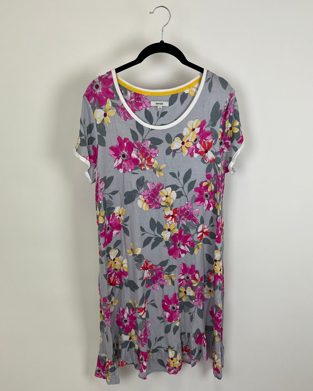 Grey and White Floral Print Lounge Dress - Size 4/6